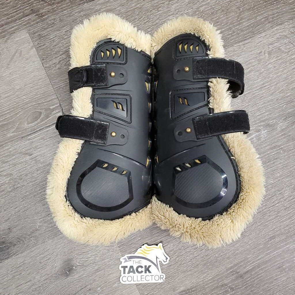 Open Front Boots, Fleece Lined, Velcro - Tabs *gc, clean & dirty, clumpy, stains, rubs, scratches SALE