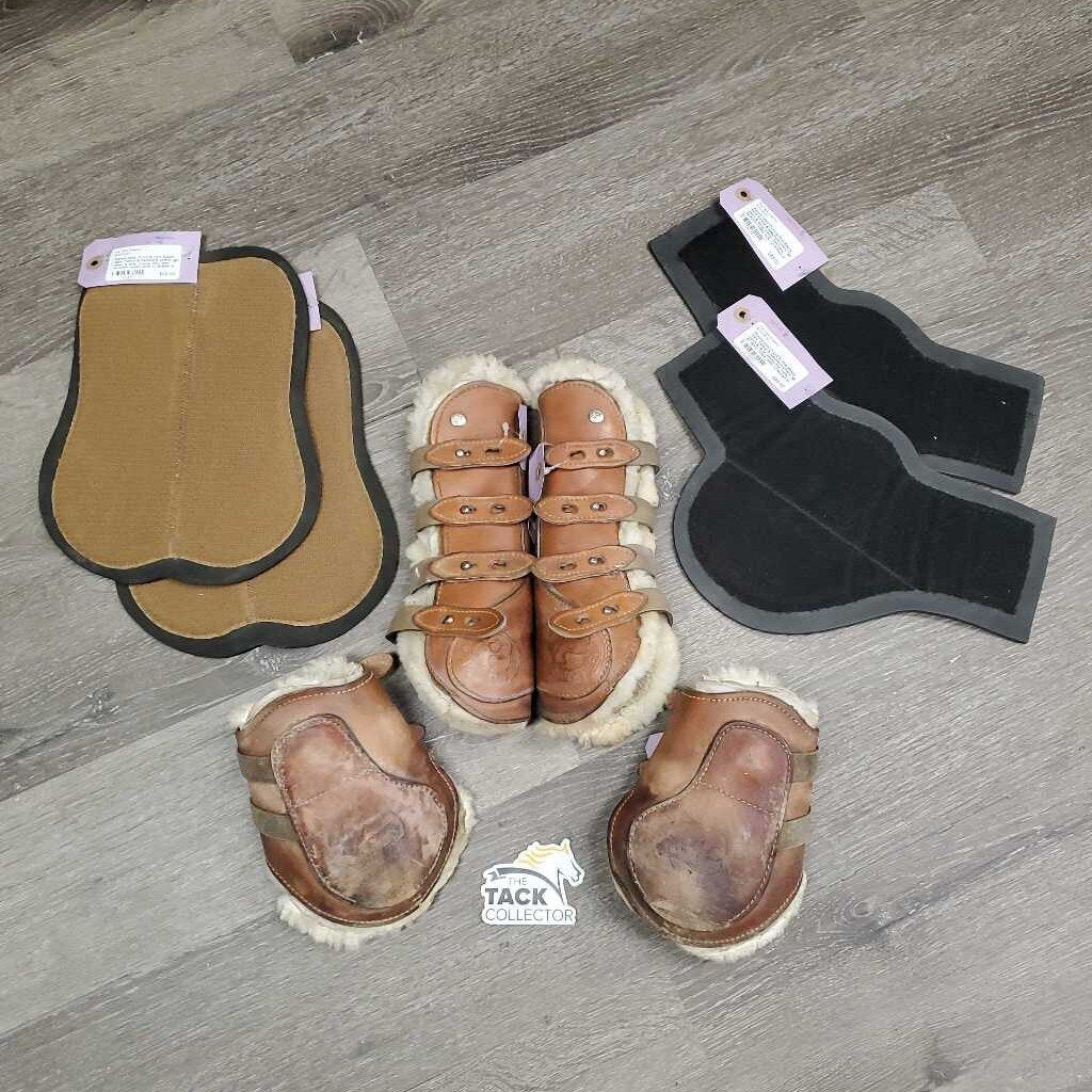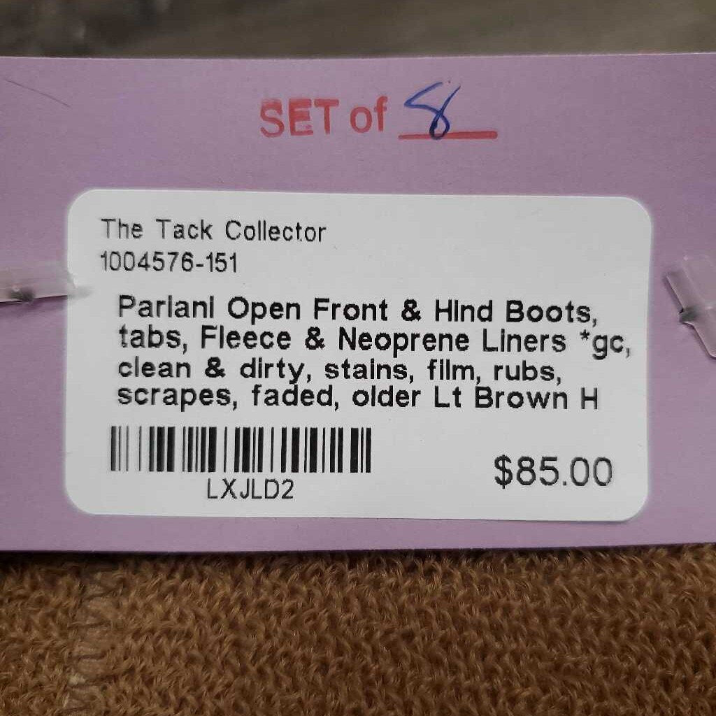 Open Front & Hind Boots, tabs, Fleece & Neoprene Liners *gc, clean & dirty, stains, film, rubs, scrapes, faded, older