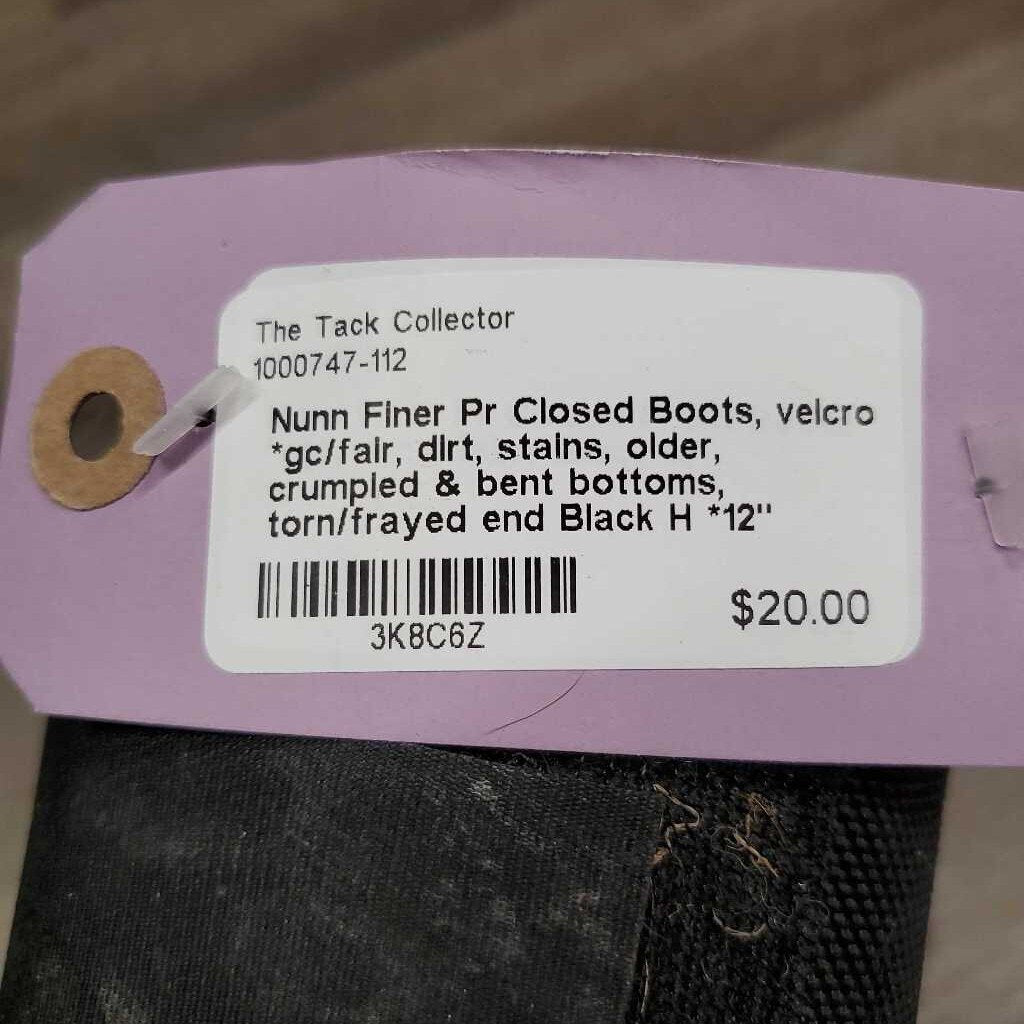 Pr Closed Boots, velcro *gc/fair, dirt, stains, older, crumpled & bent bottoms, torn/frayed end