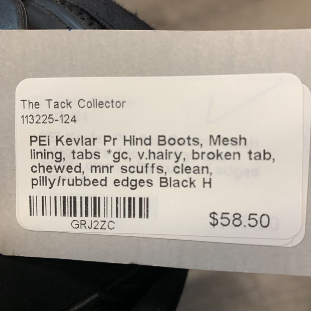 Pr Hind Boots, Mesh lining, tabs *gc, v.hairy, broken tab, chewed, mnr scuffs, clean, pilly/rubbed edges