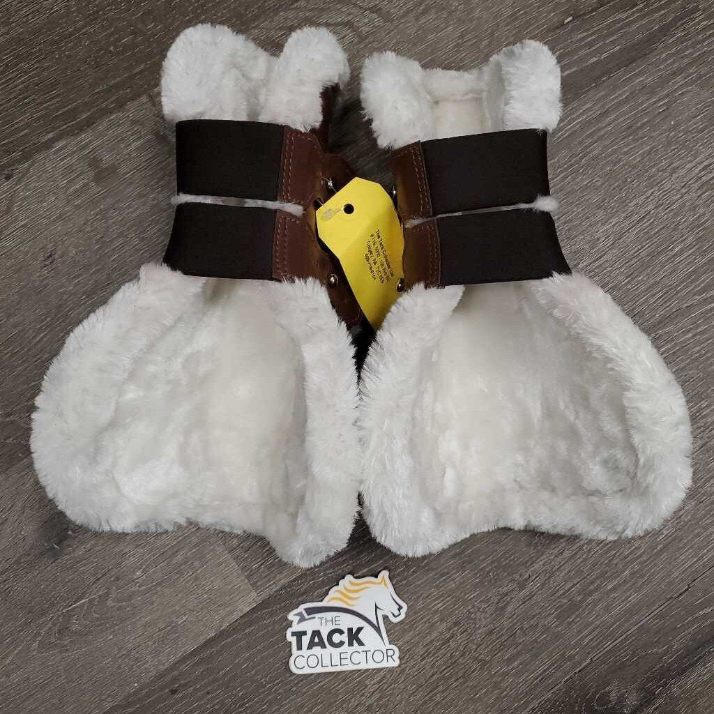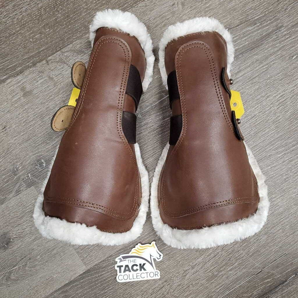 Pr Open Front Boots, Fleece Lined tabs *xc/like new, stiff, mnr edge stains