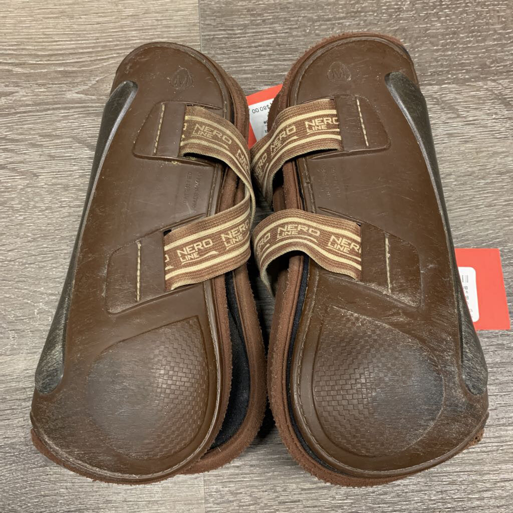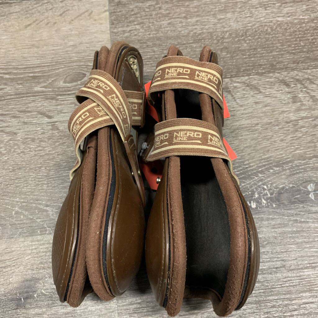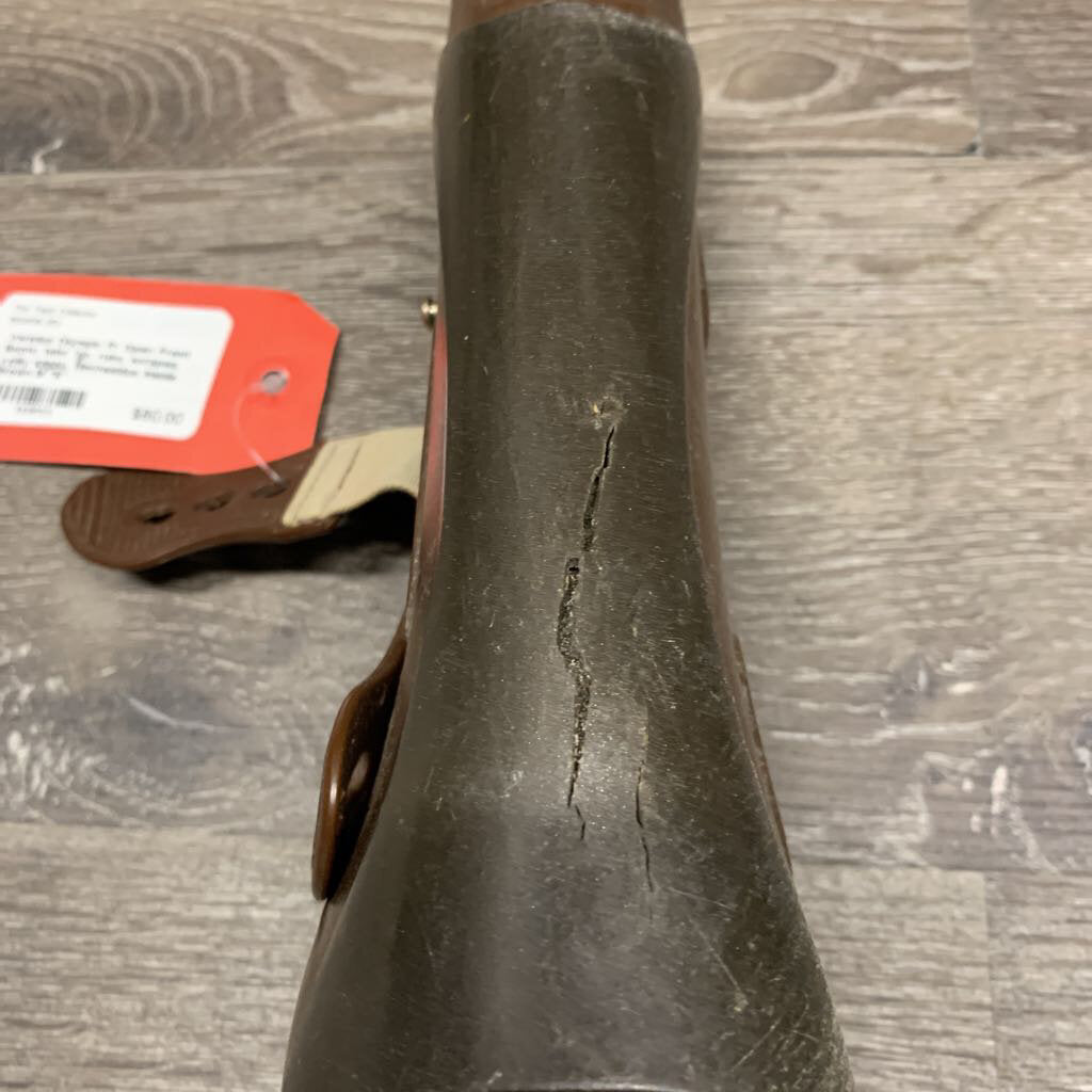Pr Open Front Boots, tabs *gc, rubs, scrapes, v.pilly edges, film/residue inside