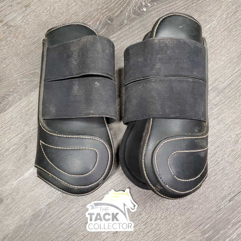 Pr Open Front Boots, velcro *gc, dirt, mnr hair, rubs, scrapes & stretched