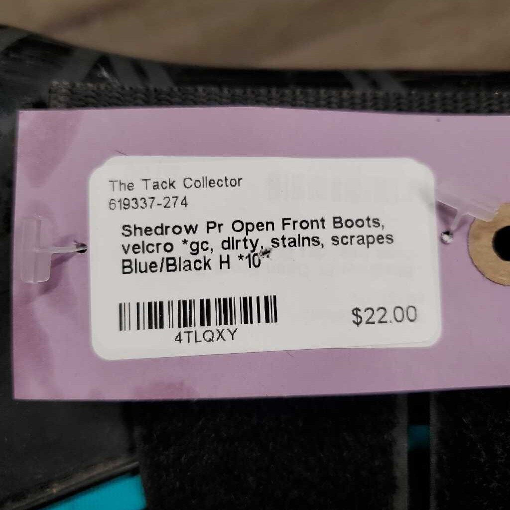 Pr Open Front Boots, velcro *gc, dirty, stains, scrapes