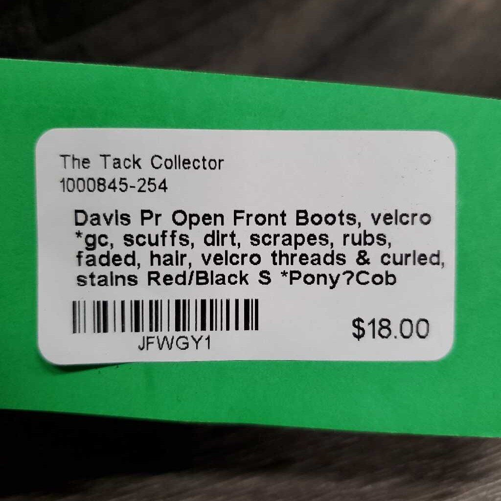 Pr Open Front Boots, velcro *gc, scuffs, dirt, scrapes, rubs, faded, hair, velcro threads & curled, stains