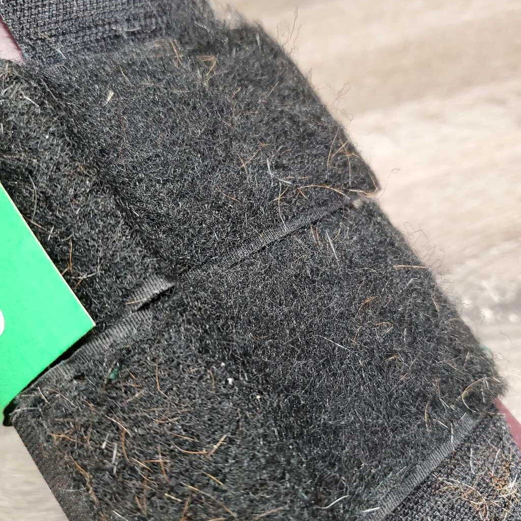 Pr Open Front Boots, velcro *gc/fair, clean, scrapes, faded, holey inside lining, hairy, residue