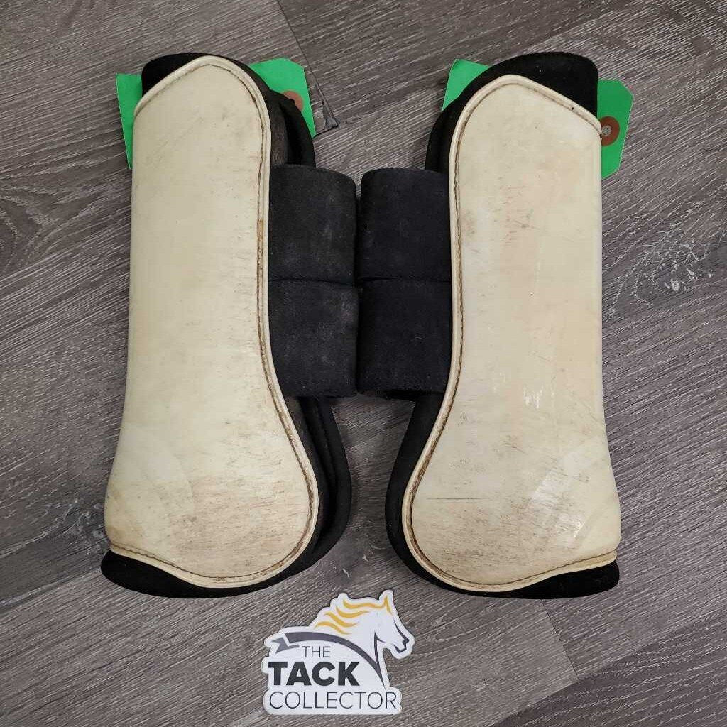 Pr Open Front Boots, velcro *gc/fair, discolored/yellowed, stains, scrapes, rubs, hair, residue, 1 squished