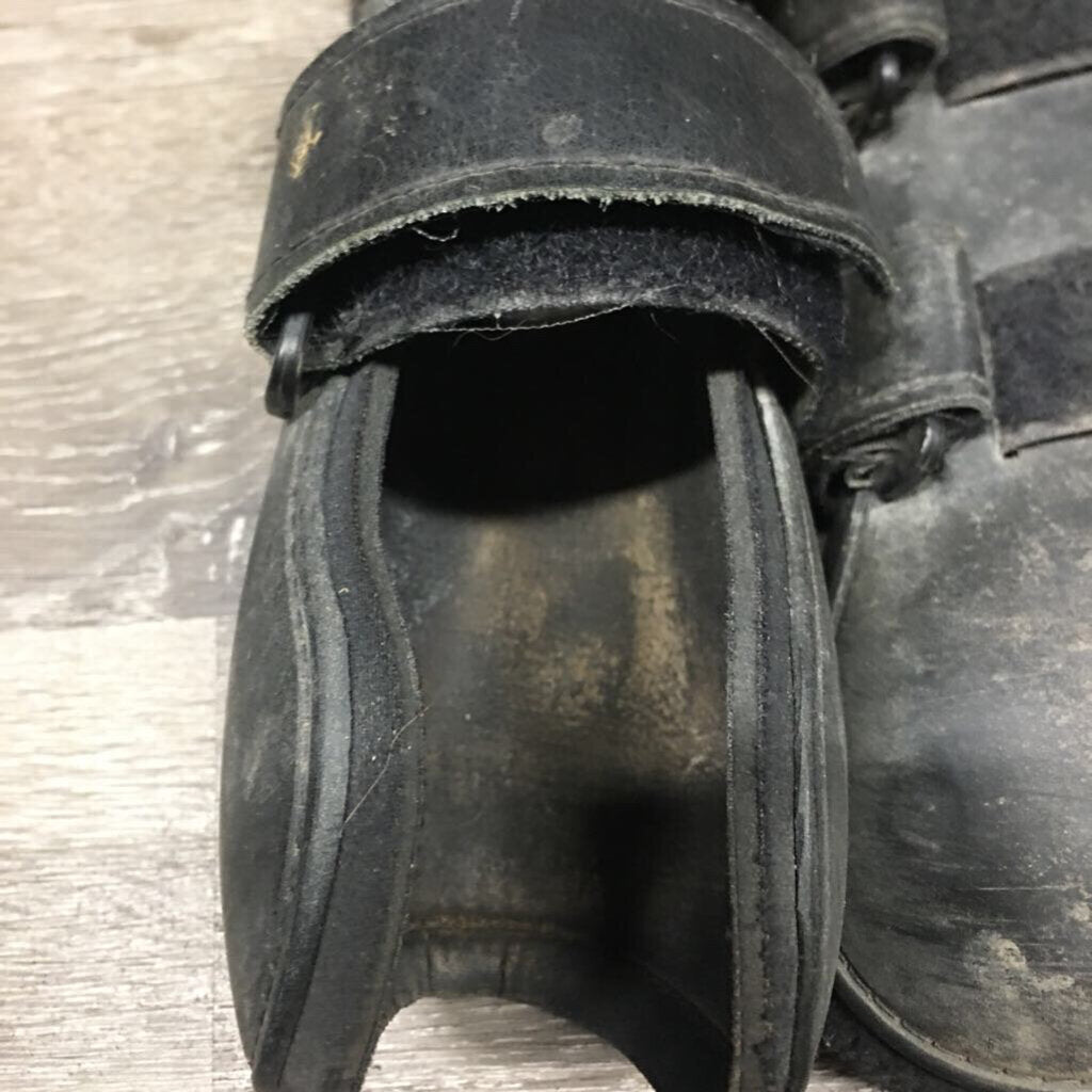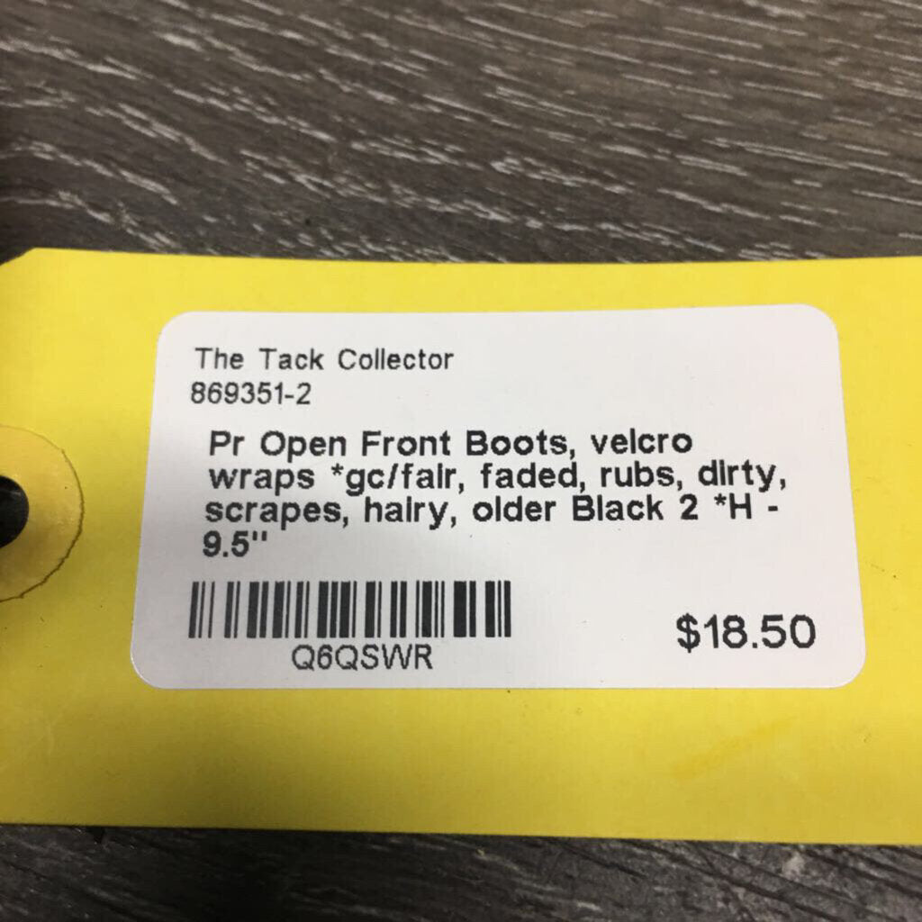 Pr Open Front Boots, velcro wraps *gc/fair, faded, rubs, dirty, scrapes, hairy, older