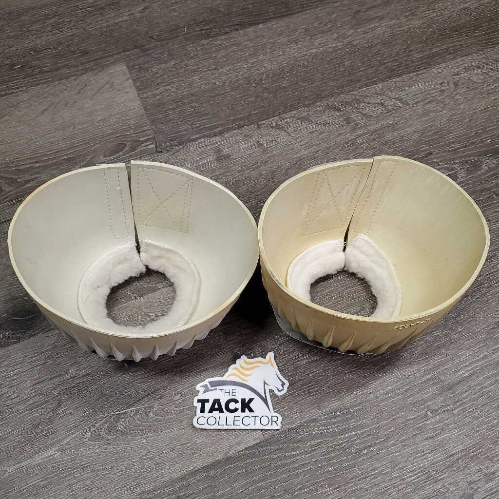 Pr Ribbed Rubber Bell Boots, velcro, fleece tops *gc, discolored, older?, mnr dirt, hair
