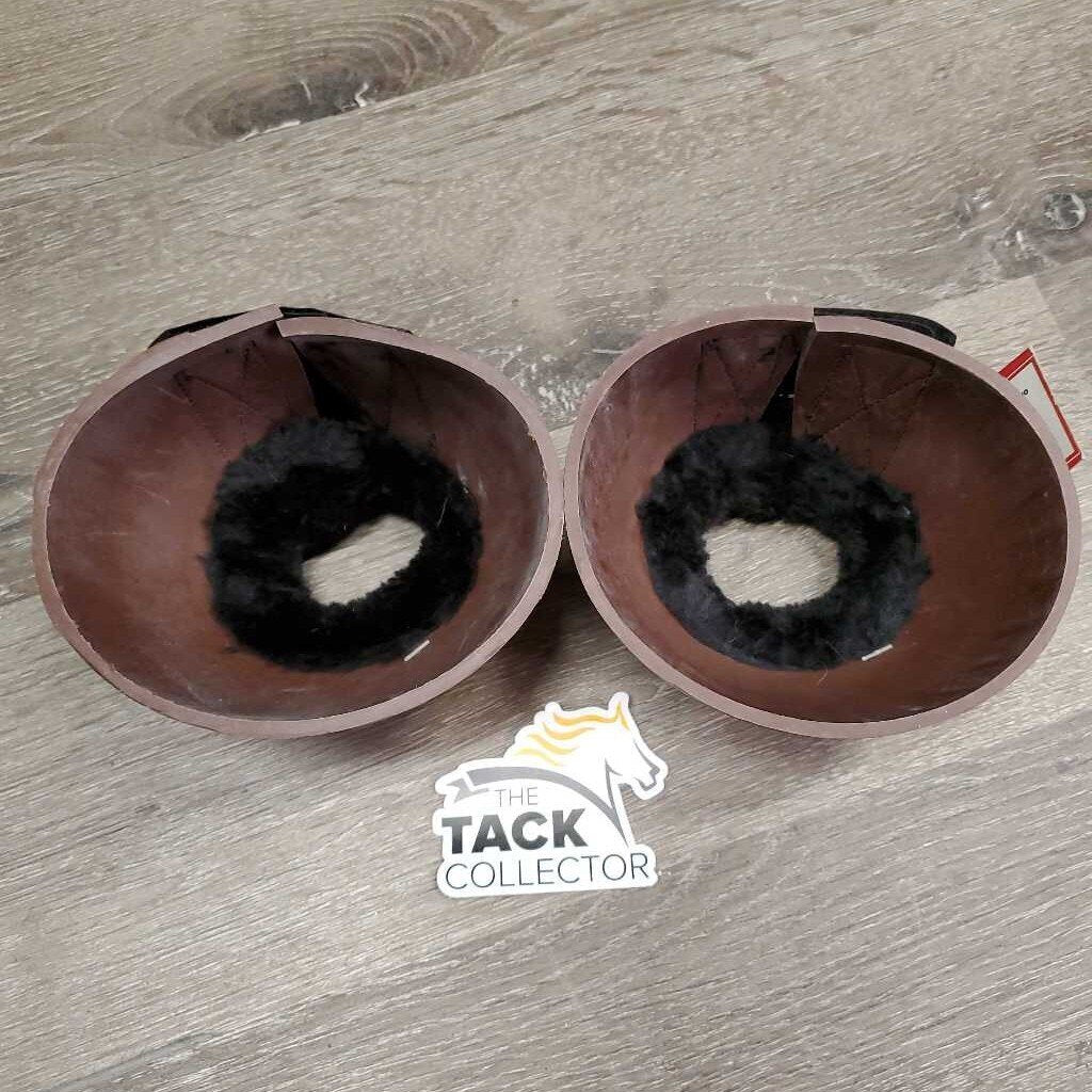 Pr Soft Ribbed Rubber Bell Boots, fleece top, velcro, tag *xc/gc, scuffs, mnr film, faded?