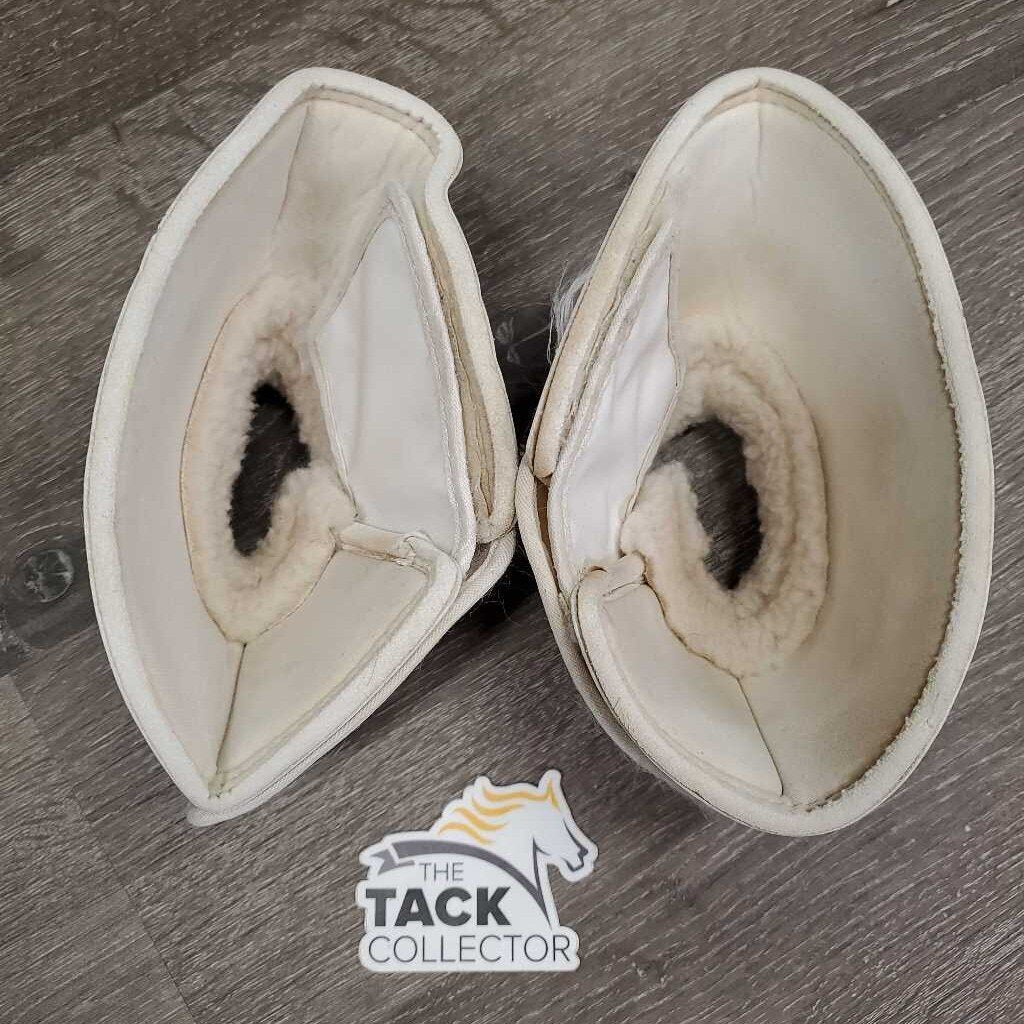 Pr Wrap Around Neoprene Bell Boots, Fleece Top, velcro *gc, mnr hair & frays, clean, clumpy SALE