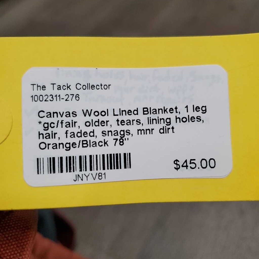 Canvas Wool Lined Blanket, 1 leg *gc/fair, older, tears, lining holes, hair, faded, snags, mnr dirt