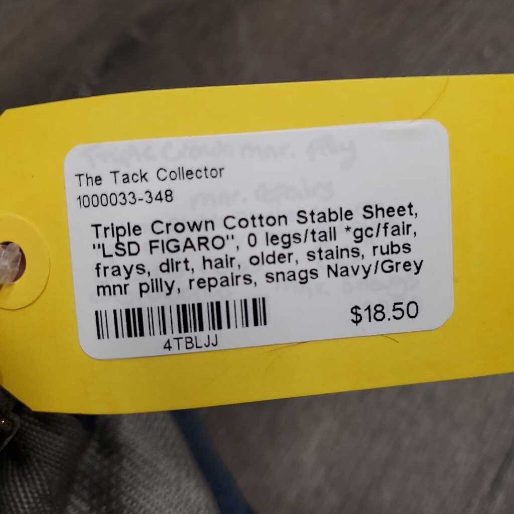 Cotton Stable Sheet, "LSD FIGARO", 0 legs/tail *gc/fair, frays, dirt, hair, older, stains, rubs mnr pilly, repairs, snags