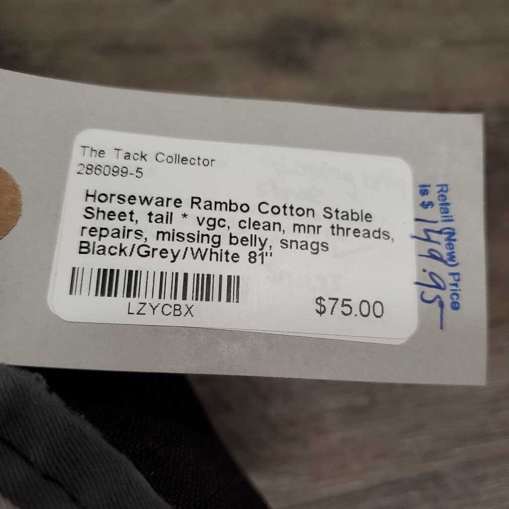 Cotton Stable Sheet, tail * vgc, clean, mnr threads, repairs, missing belly, snags