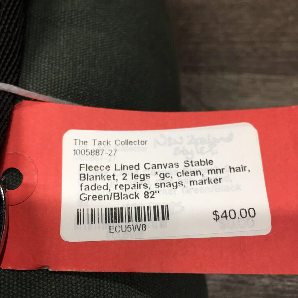 Fleece Lined Canvas Stable Blanket, 2 legs *gc, clean, mnr hair, faded, repairs, snags, marker
