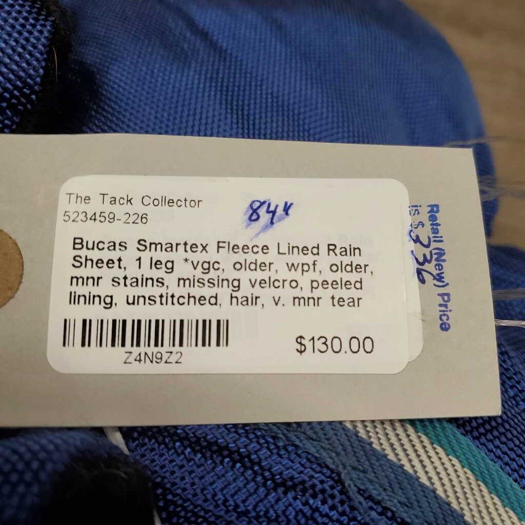 Fleece Lined Rain Sheet, 1 leg *vgc, older, wpf, older, mnr stains, missing velcro, peeled lining, unstitched, hair, v. mnr tear