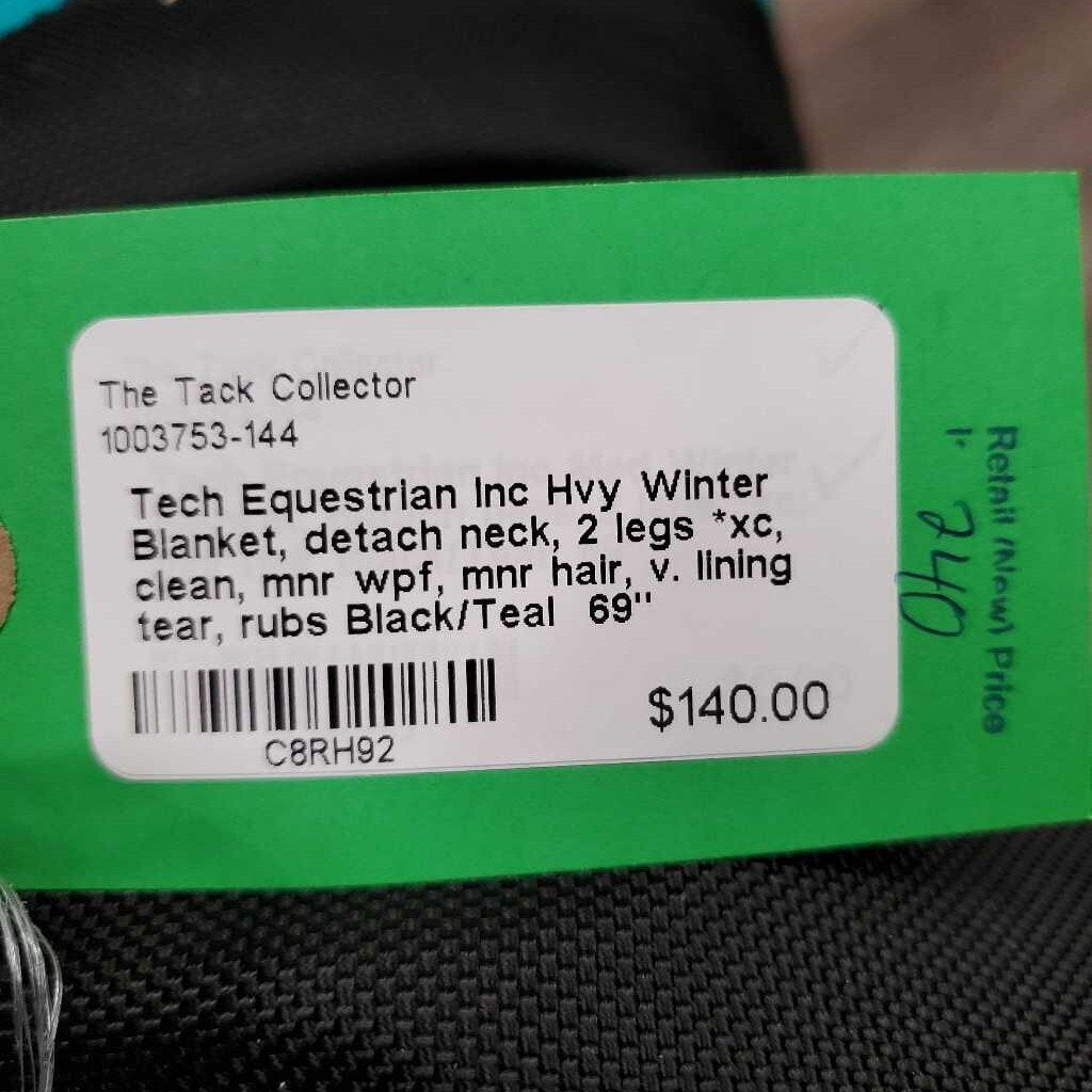 Hvy Winter Blanket, detach neck, 2 legs *xc, clean, mnr wpf, mnr hair, v. lining tear, rubs