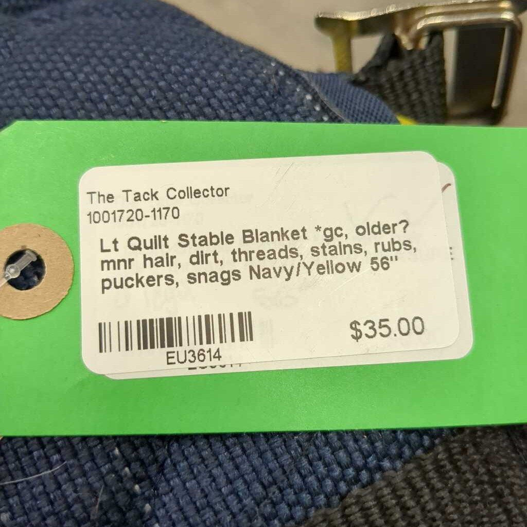 Lt Quilt Stable Blanket *gc, older? mnr hair, dirt, threads, stains, rubs, puckers, snags