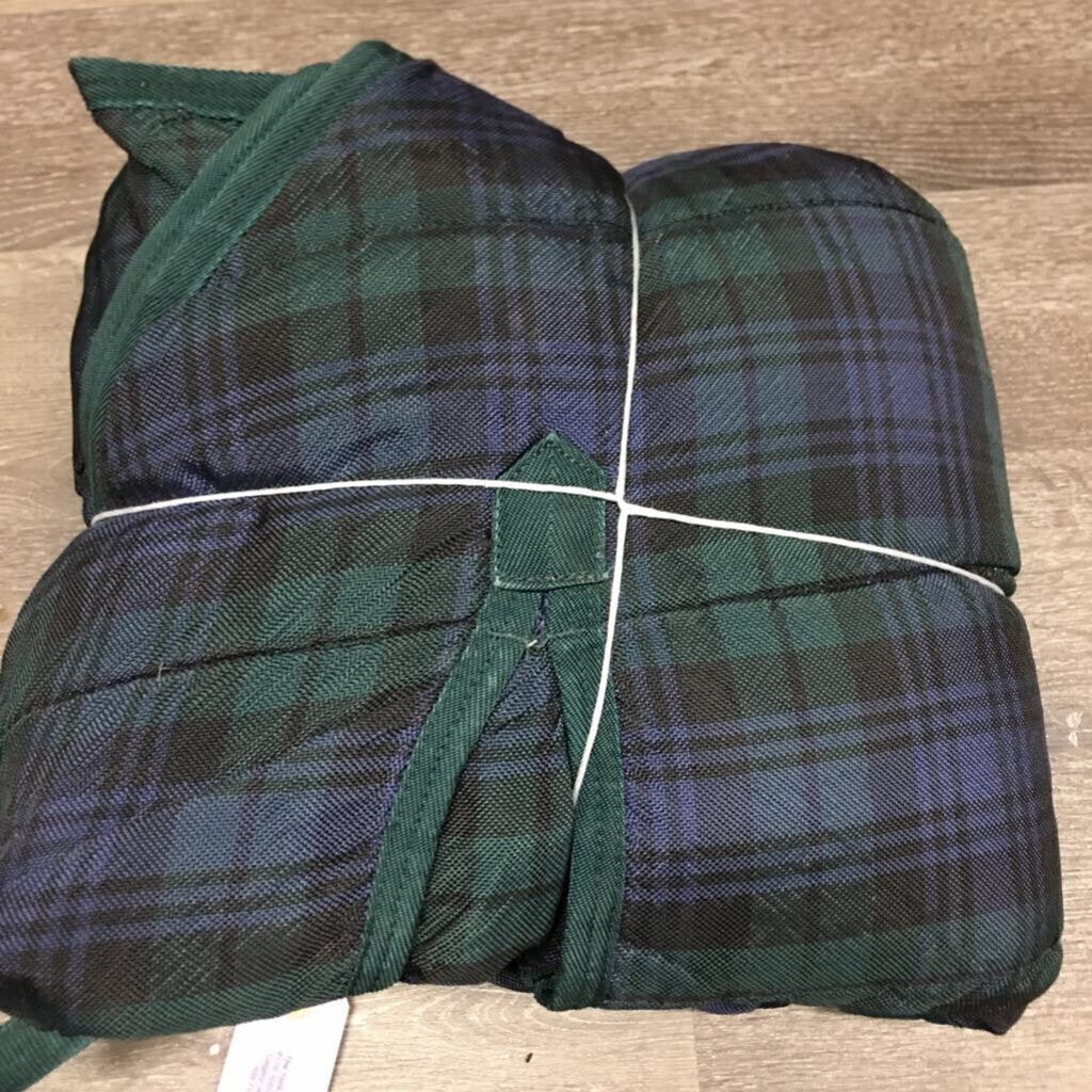 Lt Winter Blanket, 2 legs *gc, clean, mnr wpf, older?, mnr holes, rubs, broken hardware, puckers, snags, threads, faded, hair