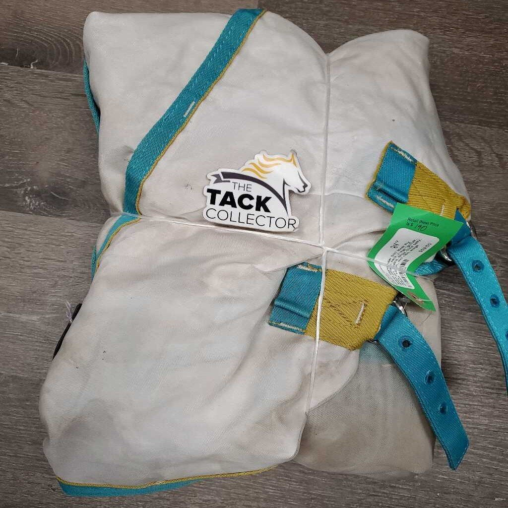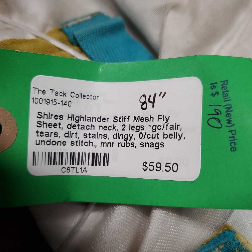 Stiff Mesh Fly Sheet, detach neck, 2 legs *gc/fair, tears, dirt, stains, dingy, 0/cut belly, undone stitch., mnr rubs, snags