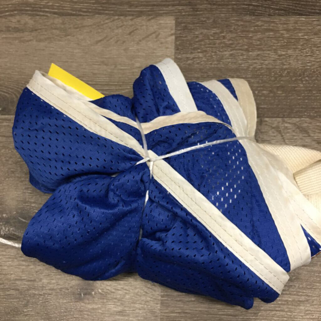 Vintage Closed Front Scrim Sheet, 2 legs *vgc, mnr snags, tears, frays, dingy, stains