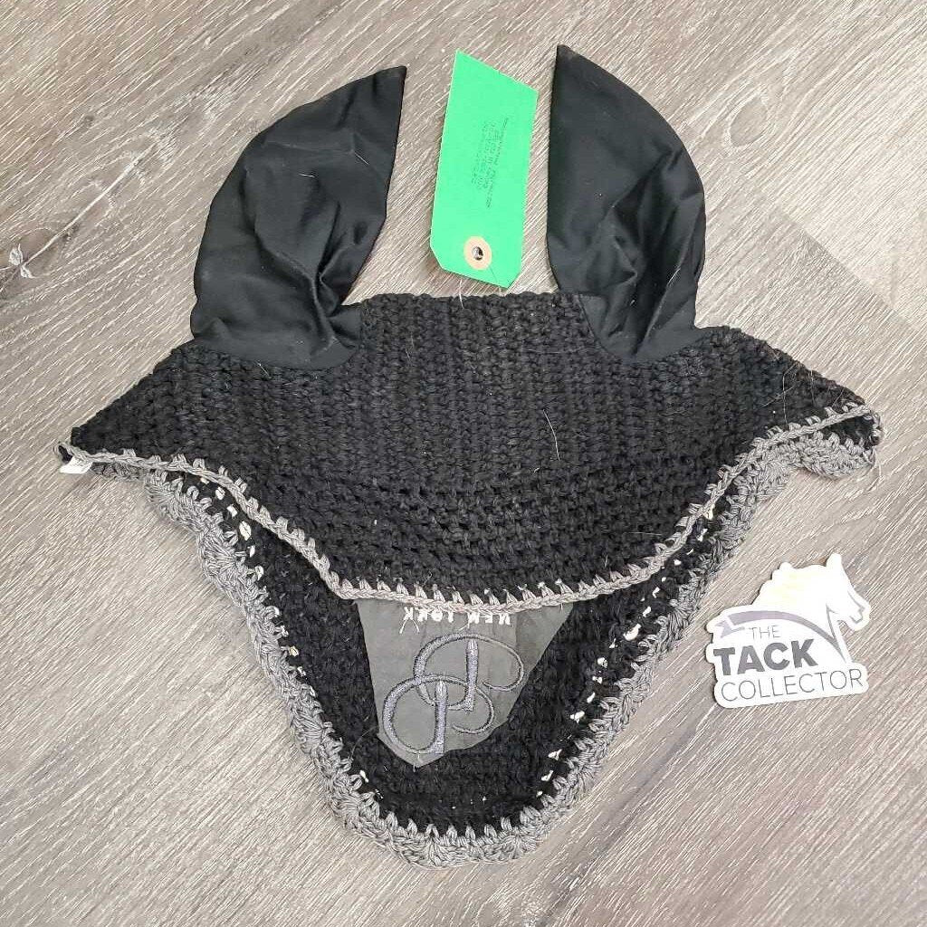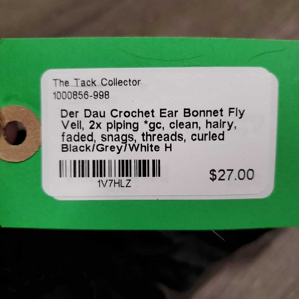 Crochet Ear Bonnet Fly Veil, 2x piping *gc, clean, hairy, faded, snags, threads, curled