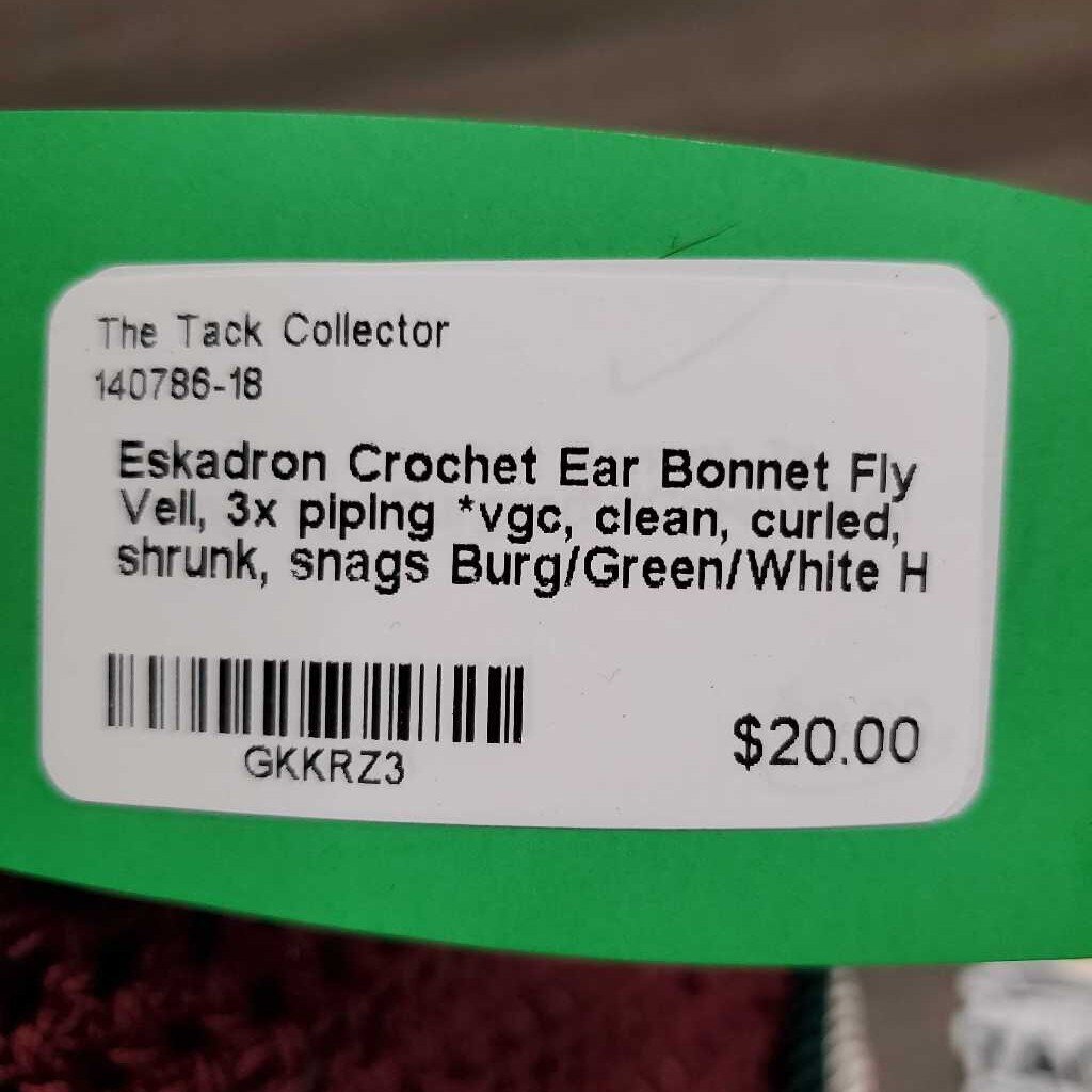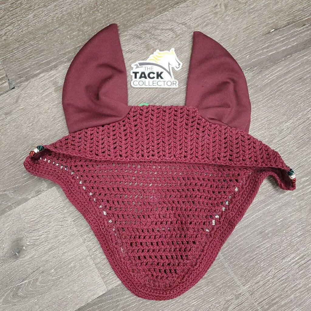 Crochet Ear Bonnet Fly Veil, 3x piping *vgc, clean, curled, shrunk, snags