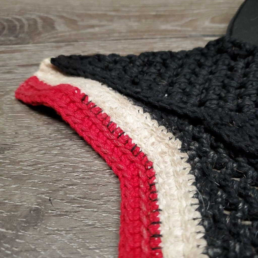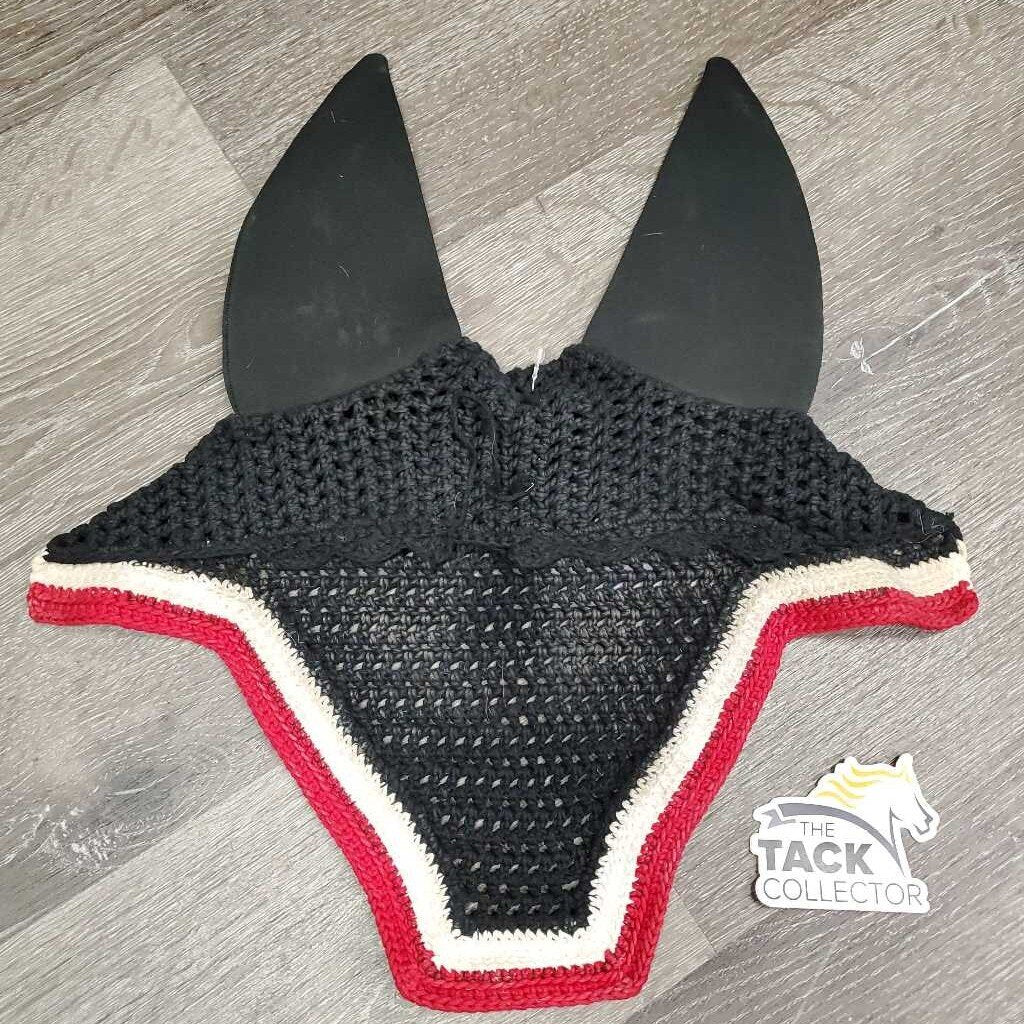 Crochet Ear Bonnet Fly Veil, Sound Proof Ears, x2 bling, Grey Drawstring Bag *gc, dirty, hairy, faded, unstitched back edge