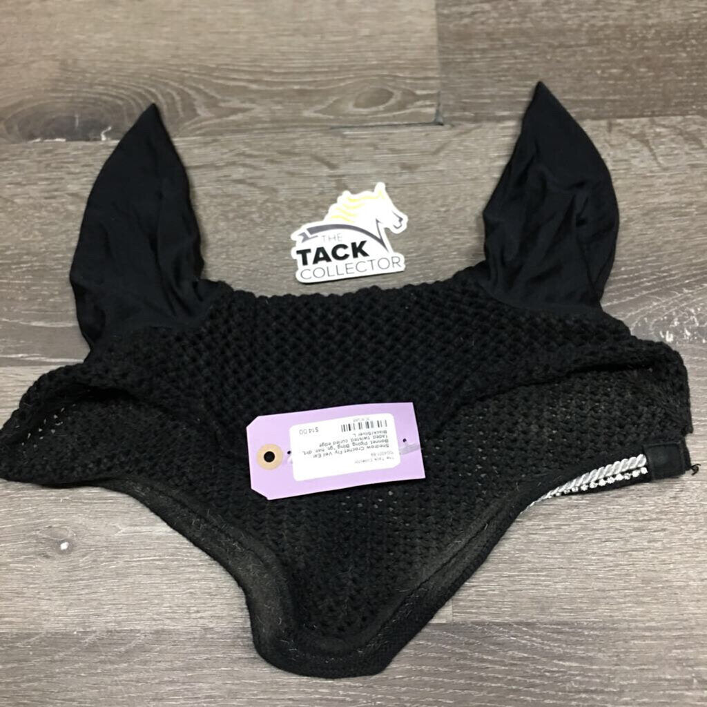 Crochet Fly Veil Ear Bonnet, Piping, Bling *gc, hair, dirt, faded, twisted, curled edge