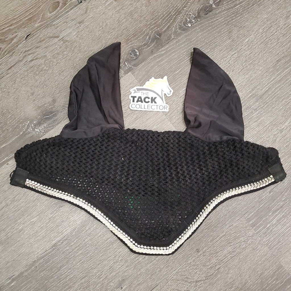 "Deluxe Crystal" Crochet Fly Veil Ear Bonnet, bling, piping *gc, dirty, hairy, faded, curled edges, stains