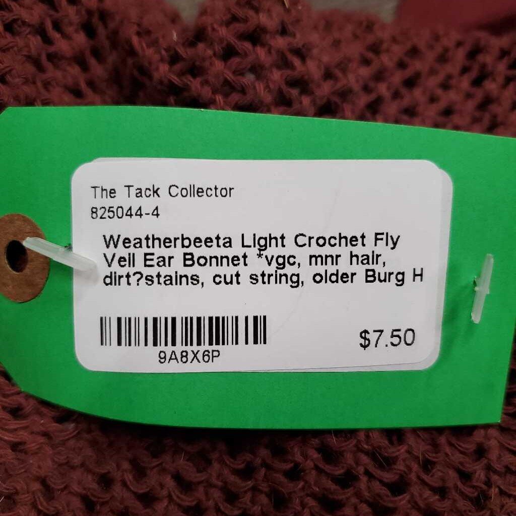 Light Crochet Fly Veil Ear Bonnet *vgc, mnr hair, dirt?stains, cut string, older