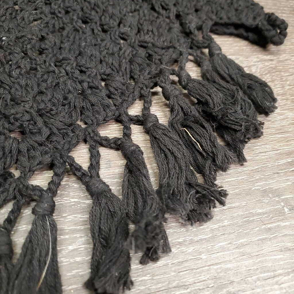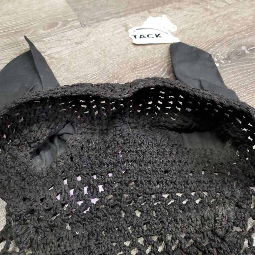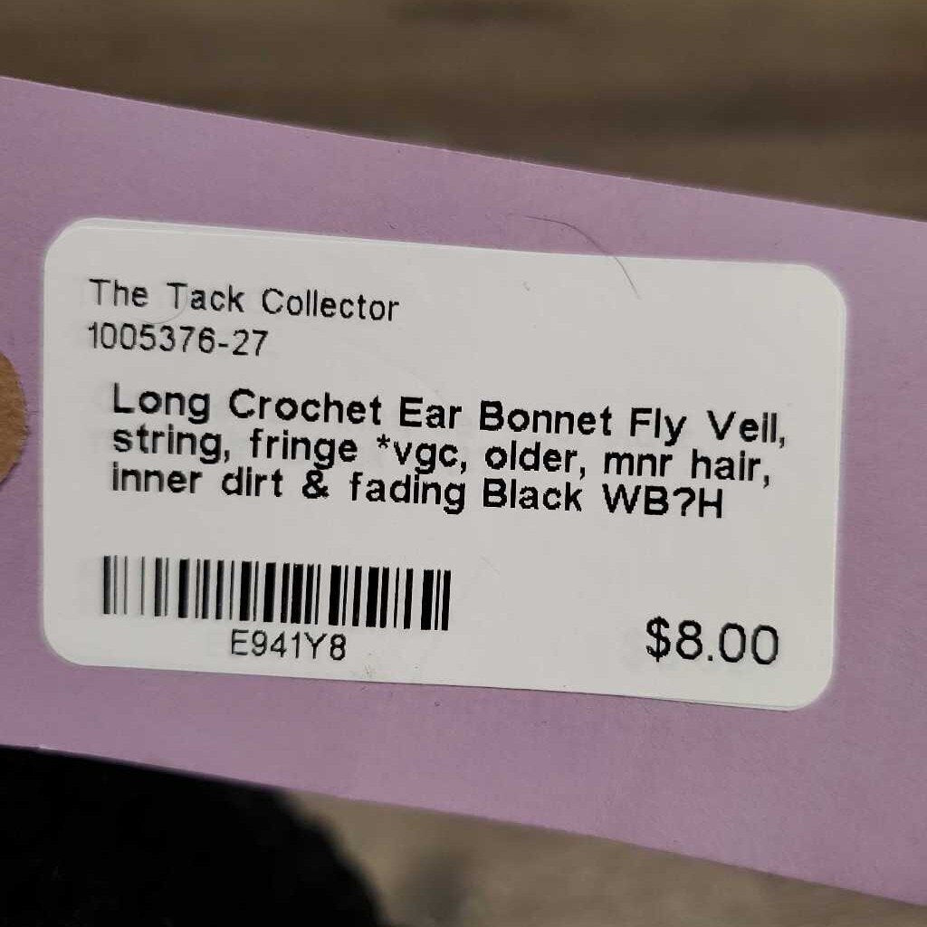 Long Crochet Ear Bonnet Fly Veil, string, fringe *vgc, older, mnr hair, inner dirt & fading