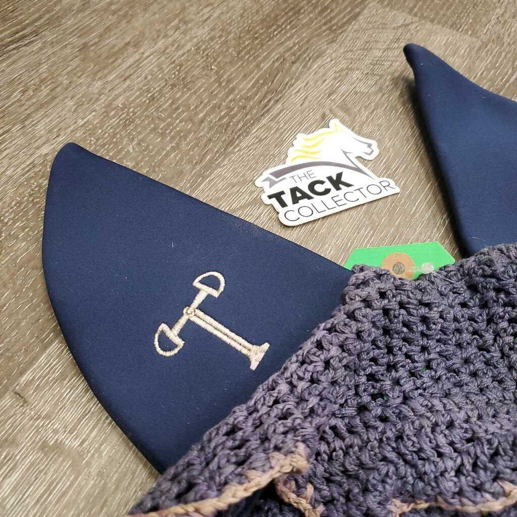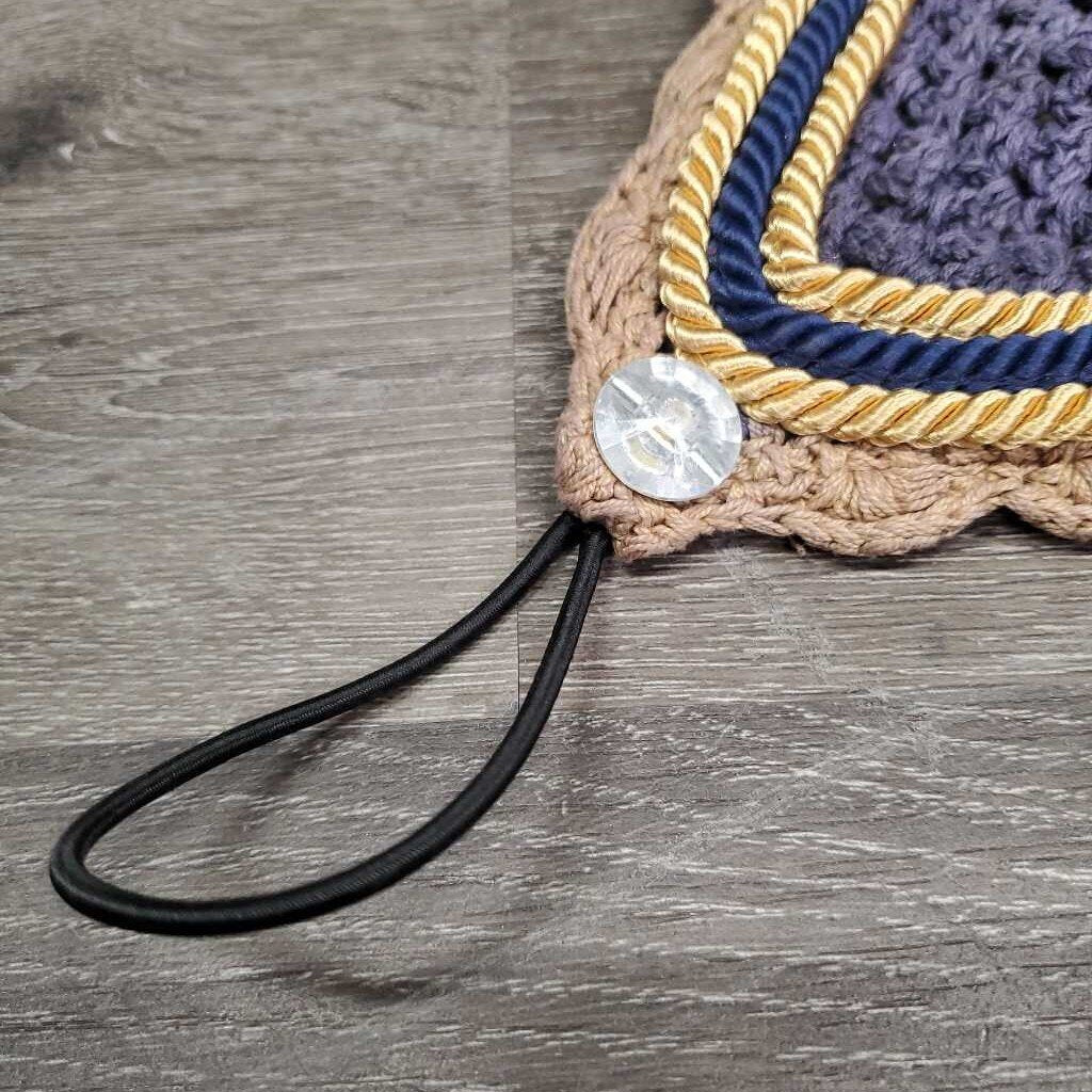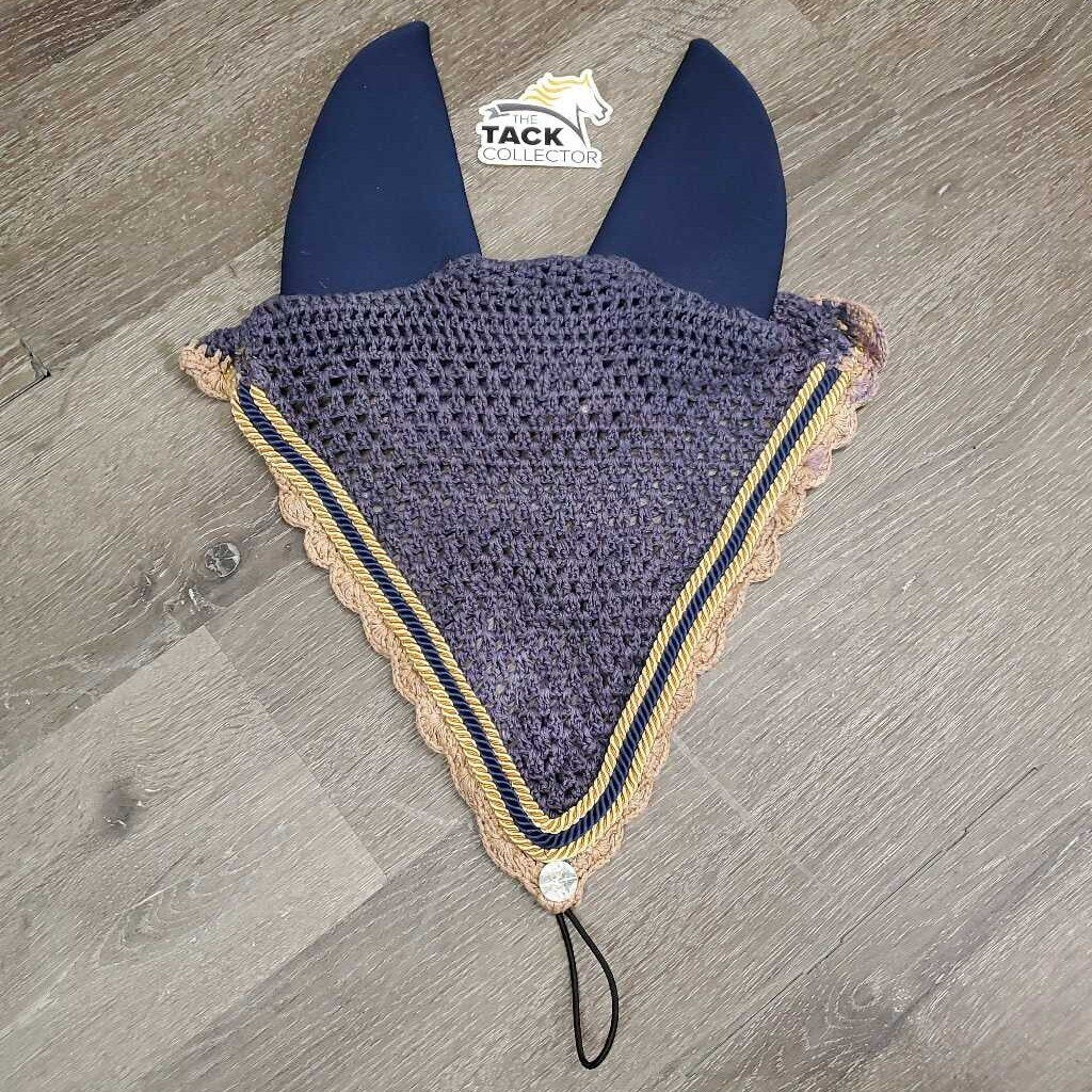 Tie Down Crochet Ear Bonnet Fly Veil, Sound Proof Ears, 3x piping *gc, faded, clean, curled