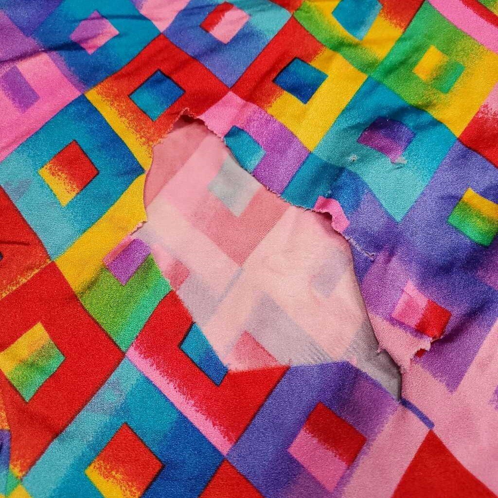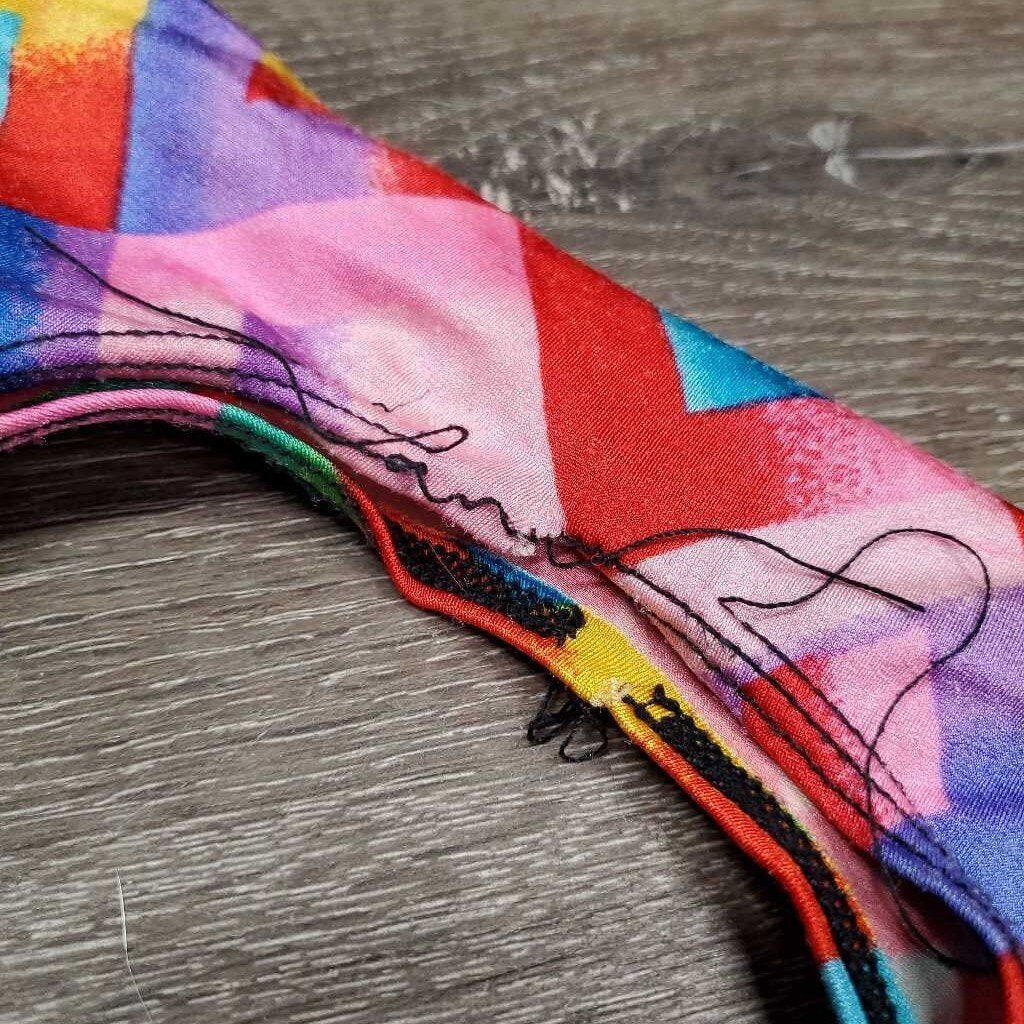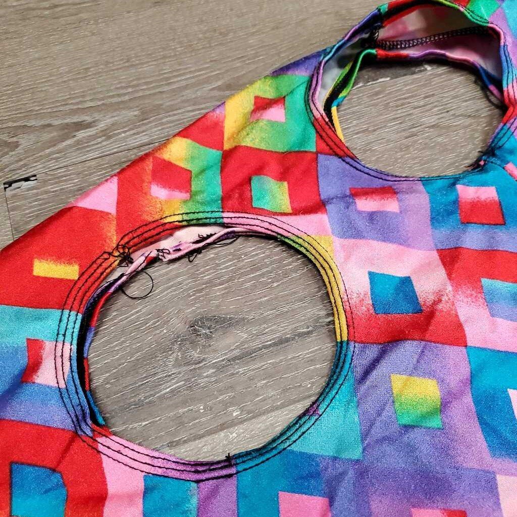 Full Face Slinky, Pull On, Velcro *gc/fair, big & sm holes, hair, threads, rubs, snags, holes, v.frayed & stretched els, unstitched eyes