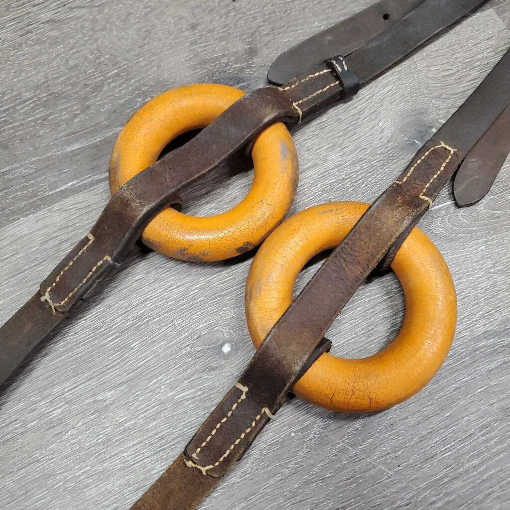Leather Donut Side Reins *gc/fair, older, clean, rusty, CRACKING, xholes