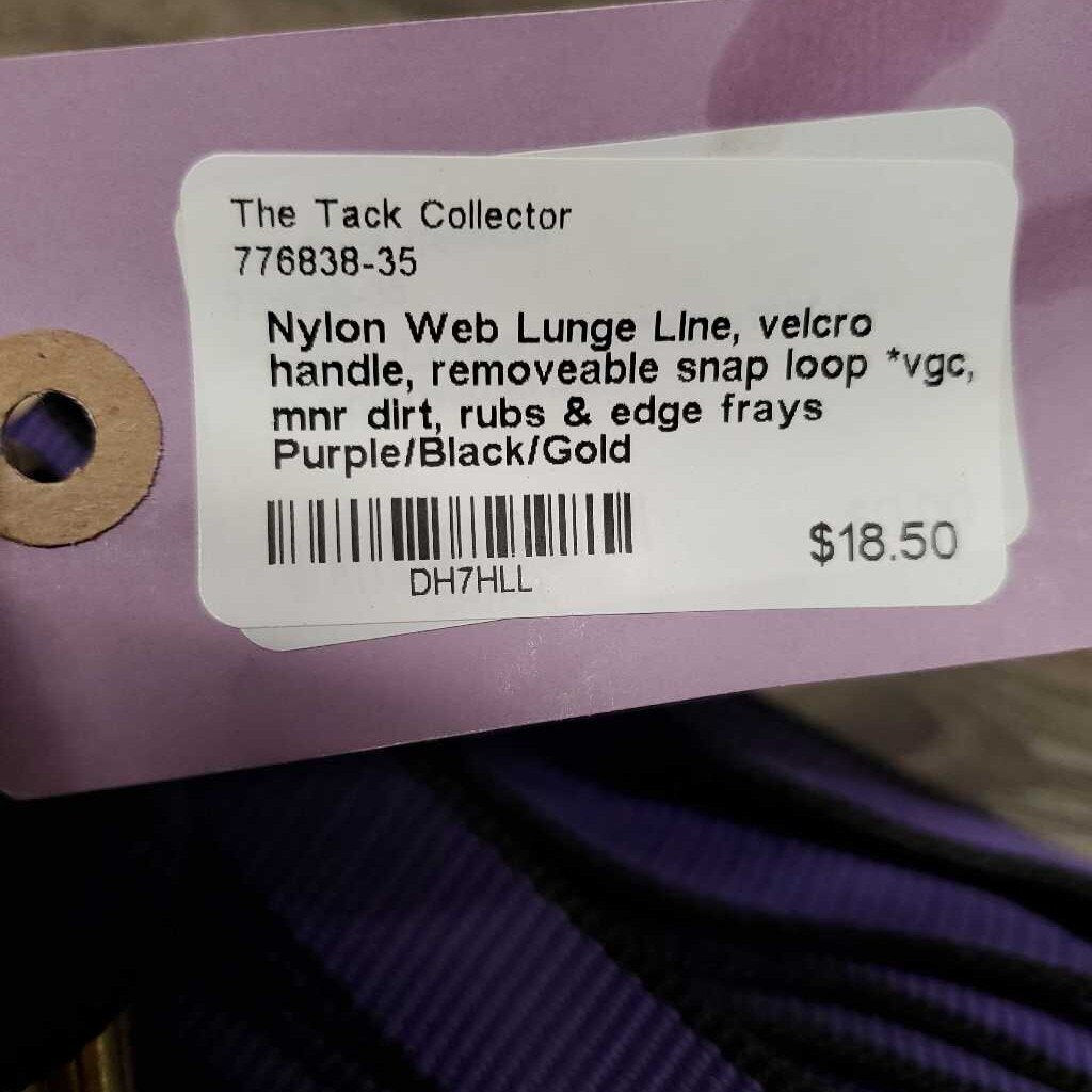 Nylon Web Lunge Line, velcro handle, removeable snap loop *vgc, mnr dirt, rubs & edge frays