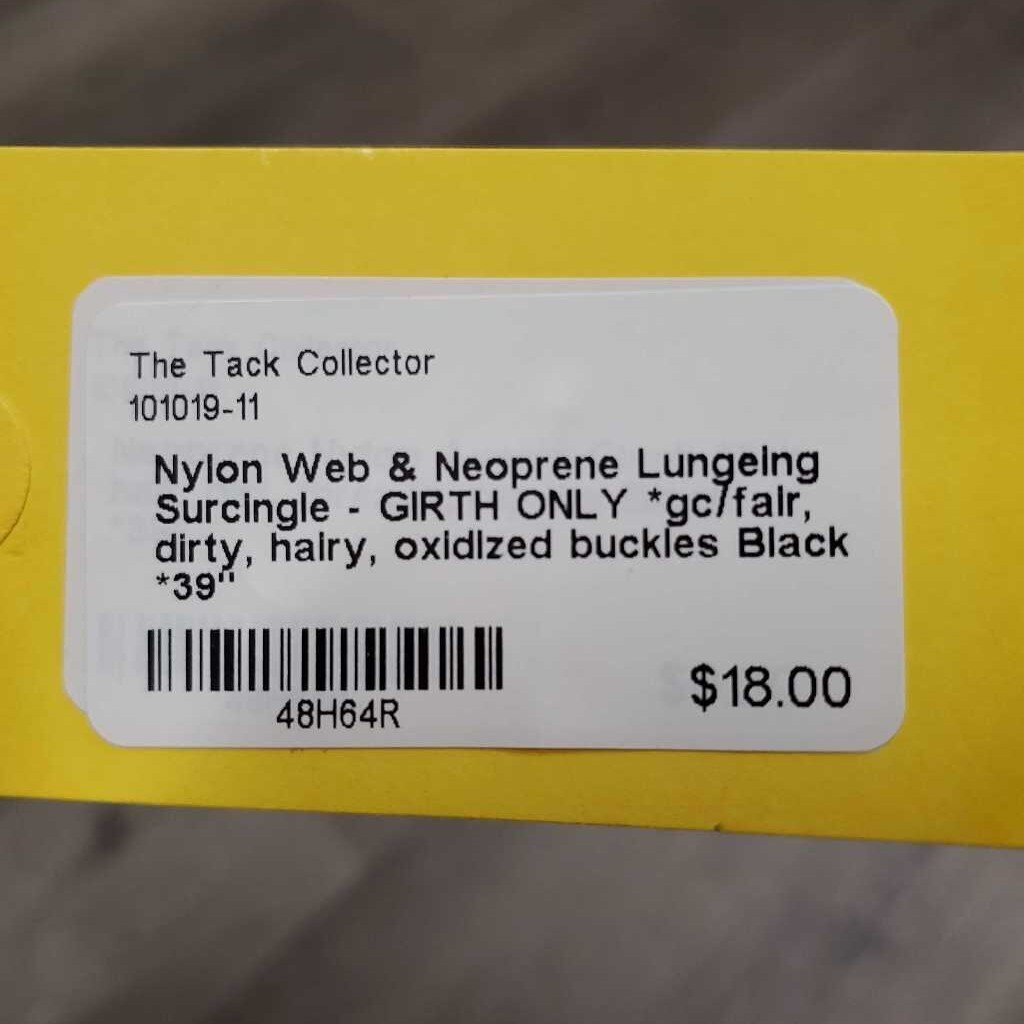 Nylon Web & Neoprene Lungeing Surcingle - GIRTH ONLY *gc/fair, dirty, hairy, oxidized buckles