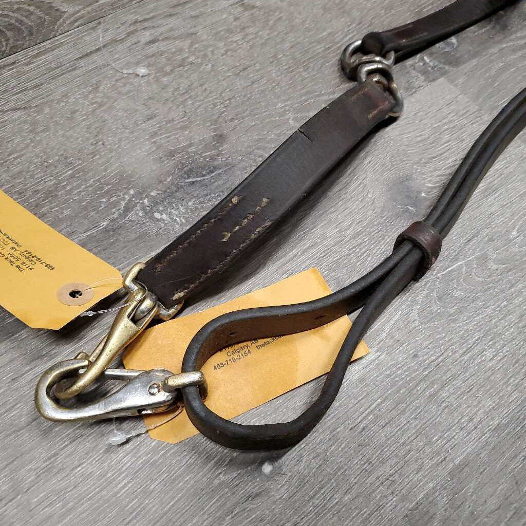 v.Thick Leather Side Reins, Swivel Center *gc, older, xholes, rubs