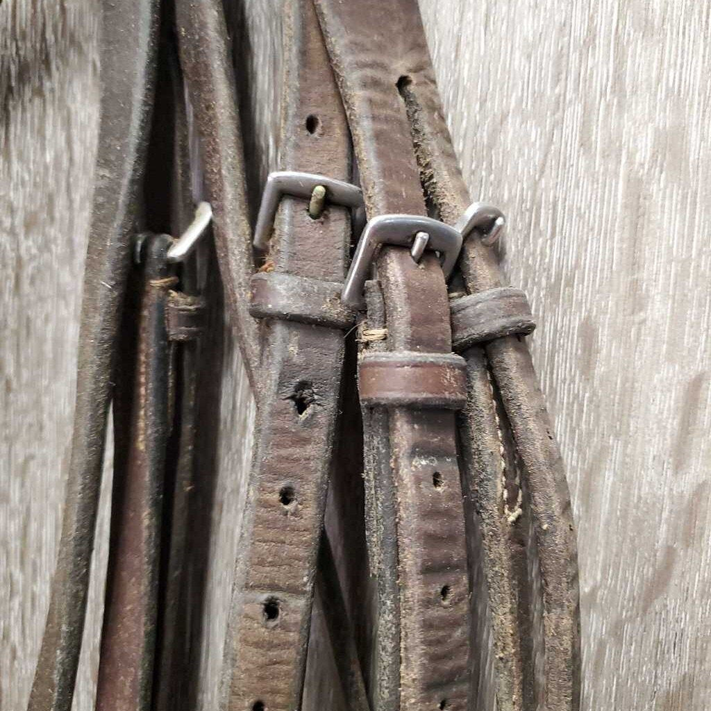 Rsd Leather Bridle, bling *NO Flash, fair, MISSING Hook & keepers, residue, broken buckle, stretched holes
