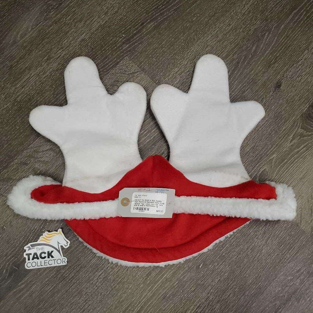 7 Pc SANTA Set: Saddle Pad, Santa & Reindeer Hats, 4 Leg Wraps *vgc, clean, mnr hair, rubs, pills & stains