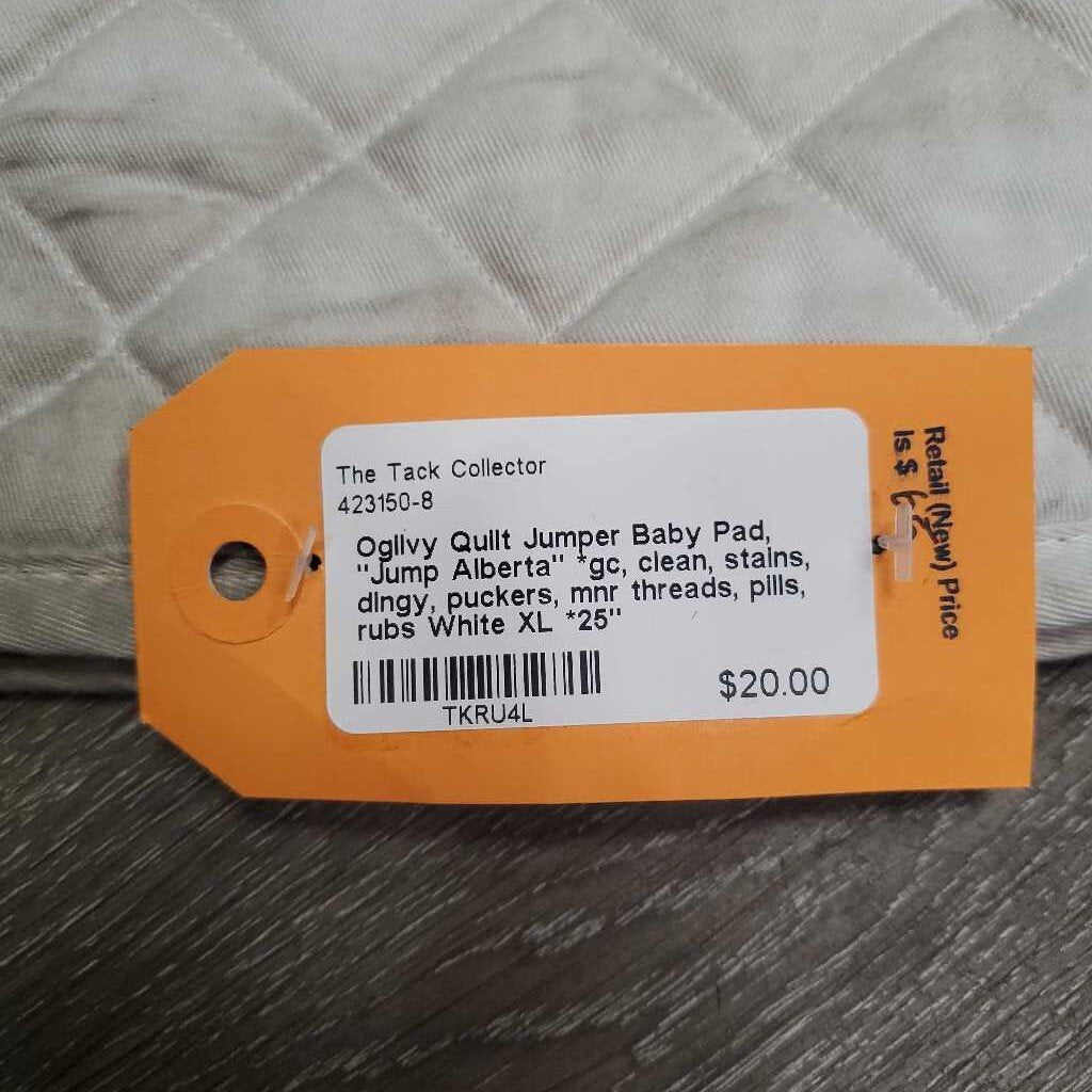 Quilt Jumper Baby Pad, "Jump Alberta" *gc, clean, stains, dingy, puckers, mnr threads, pills, rubs