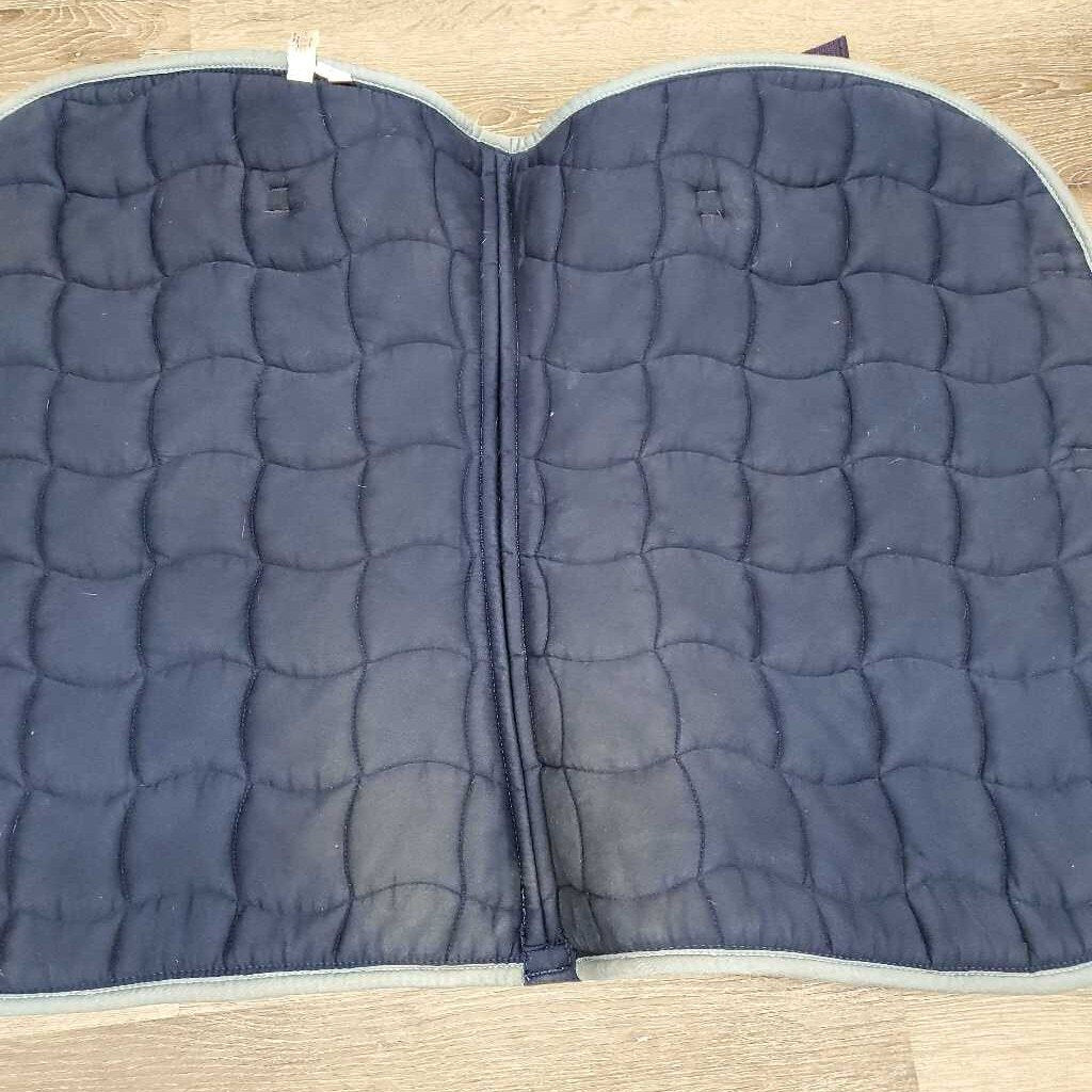 Quilt Jumper Pad, 2x piping *gc, clean, older, pills, stains, mnr hair, faded, rubs, snags, dingy binding