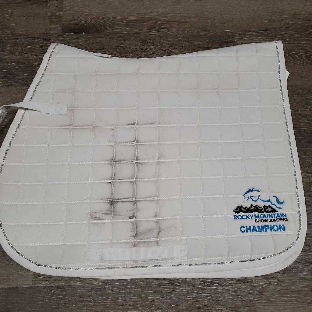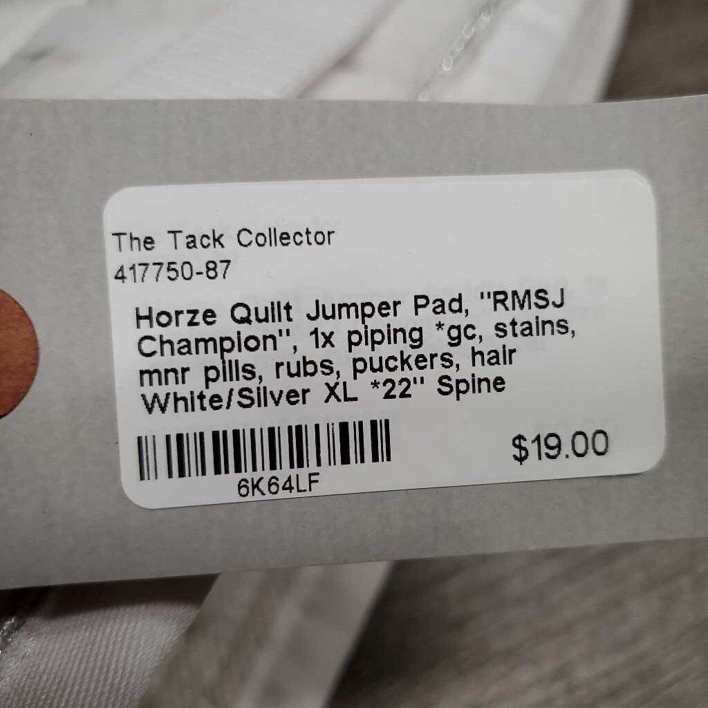 Quilt Jumper Pad, "RMSJ Champion", 1x piping *gc, stains, mnr pills, rubs, puckers, hair
