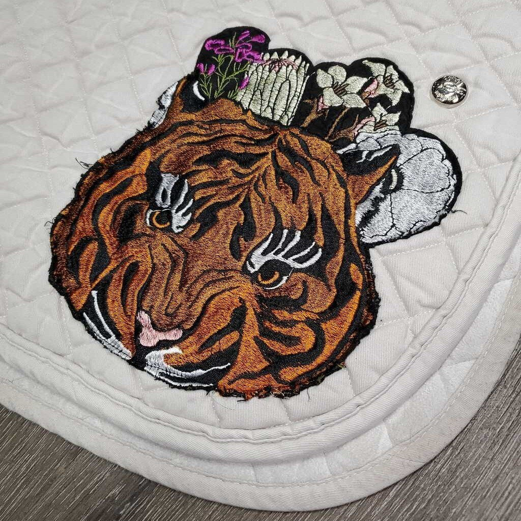 Quilt Jumper Profile Saddle Pad, satin tiger applique *gc, clean, dingy, mnr stains, pilly