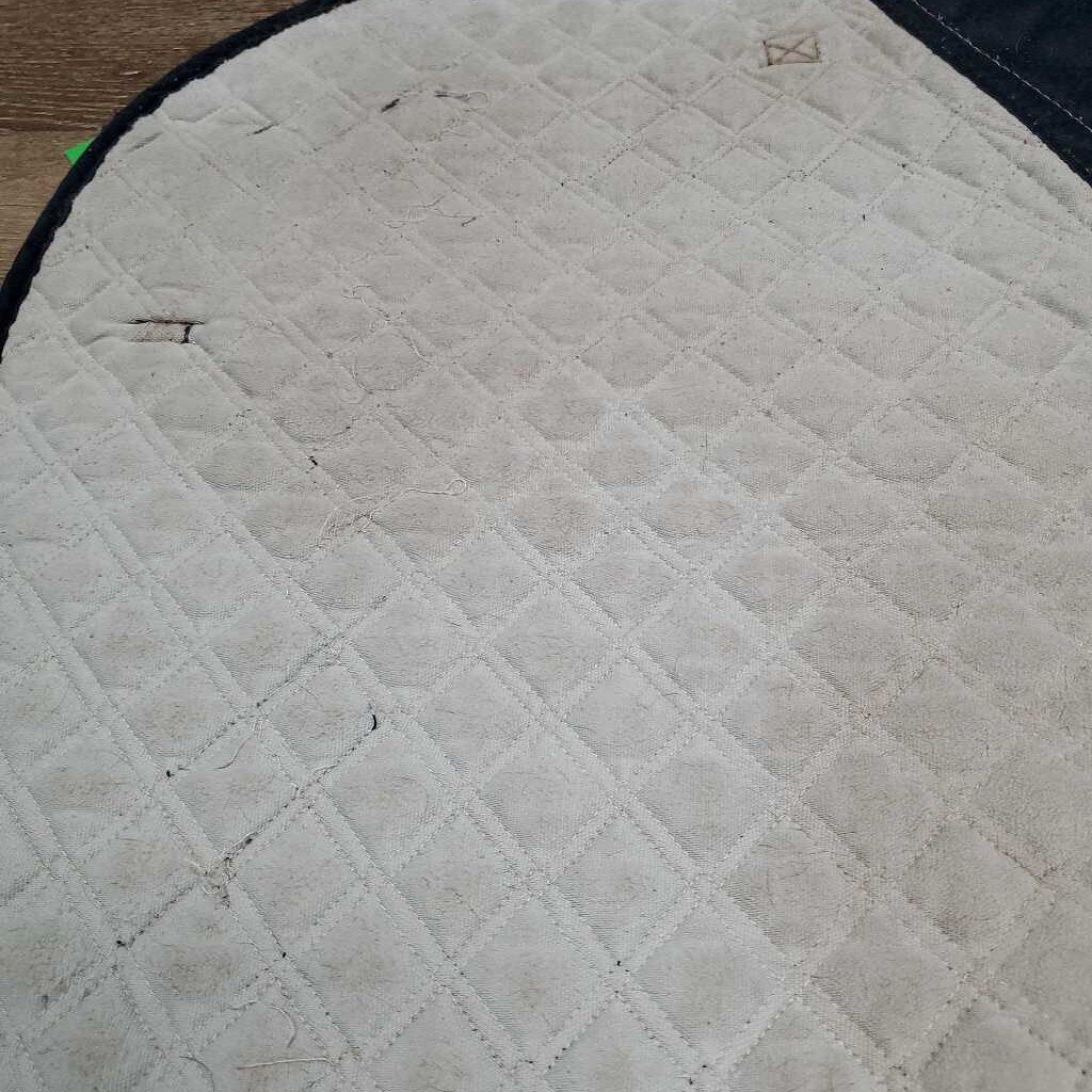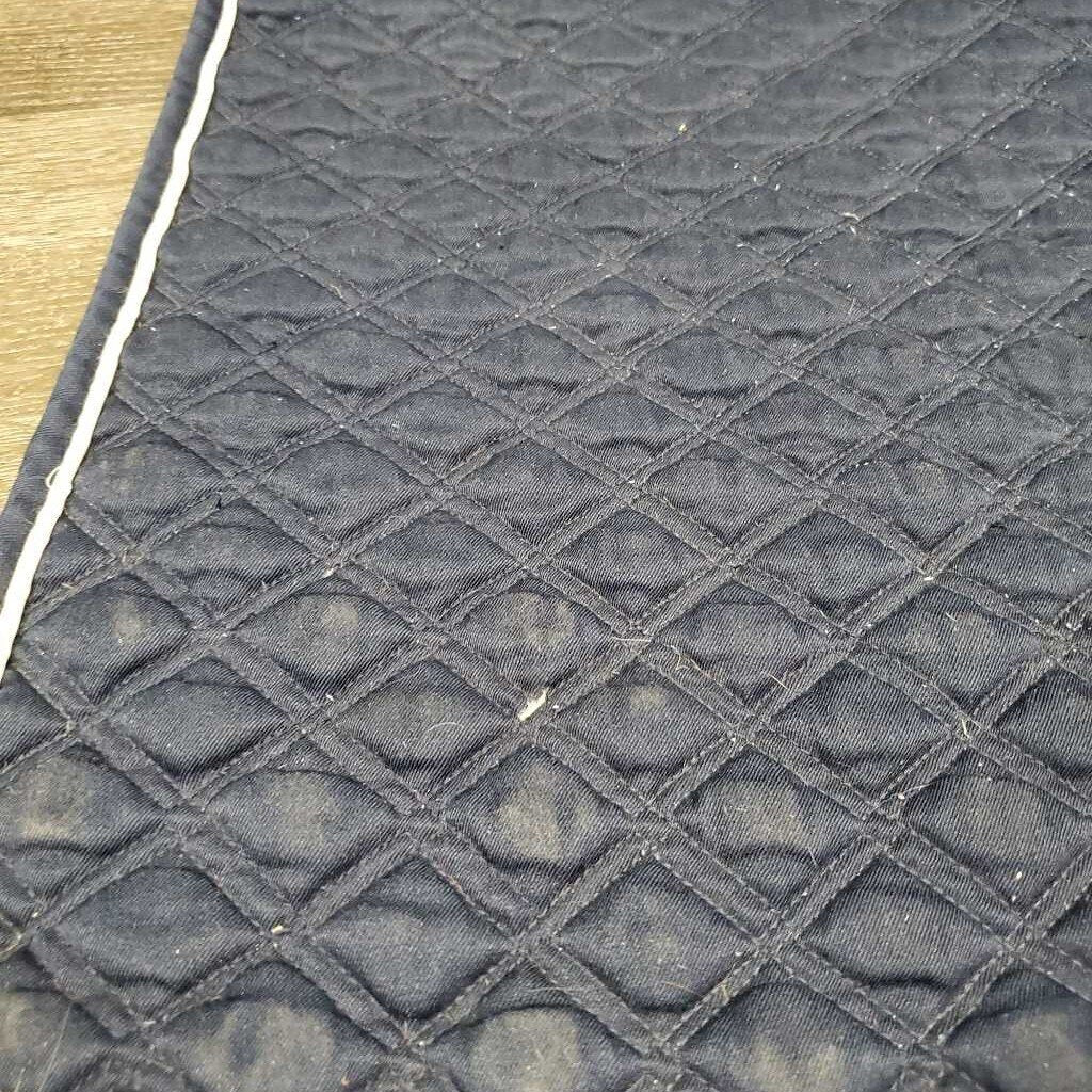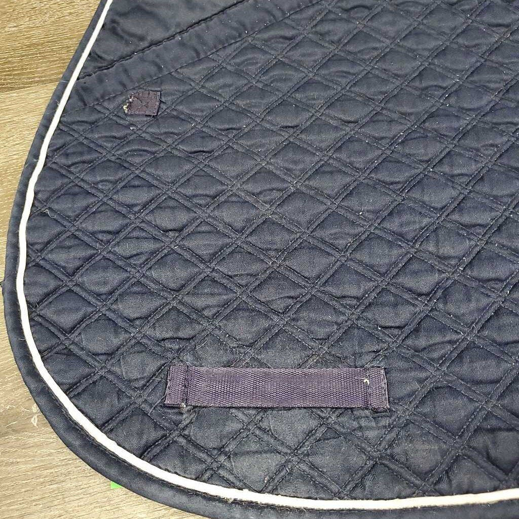 Quilt Jumper Saddle Pad, 1x piping *gc, clean, cut tabs, pilly, threads, undone stitching, rubs, mnr faded, puckers, hair, stains