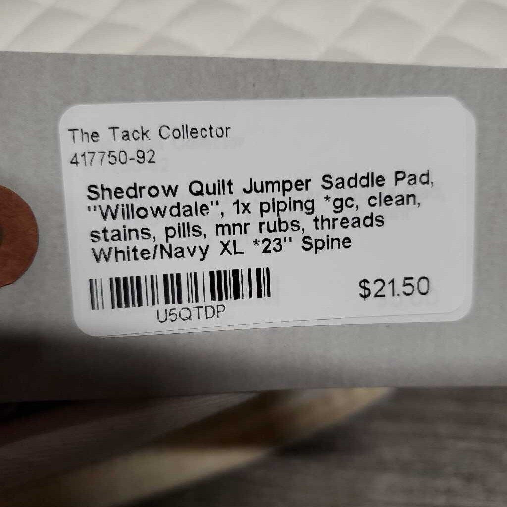 Quilt Jumper Saddle Pad, "Willowdale", 1x piping *gc, clean, stains, pills, mnr rubs, threads