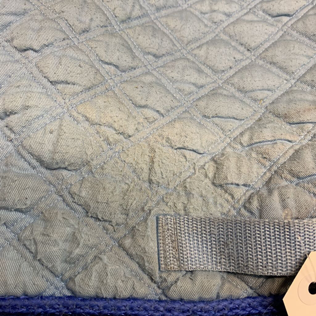 Quilted Jumper Pad, x 2 piping *gc, clean, stained, mnr hair, threads, pilly, v. worn clumpy sides, rubbed piping, puckered