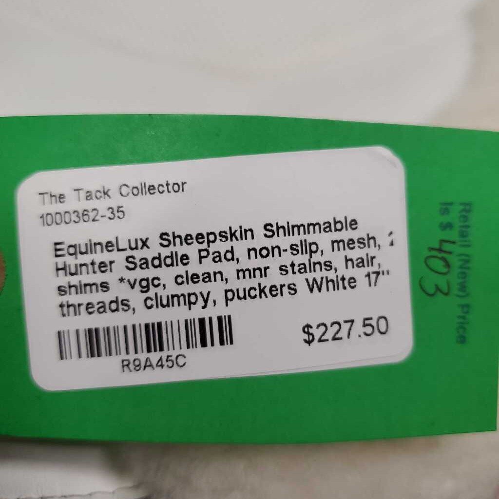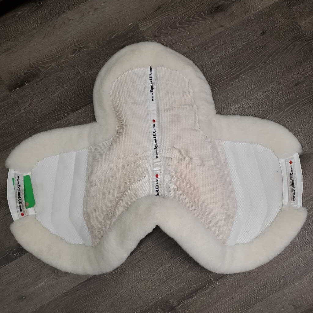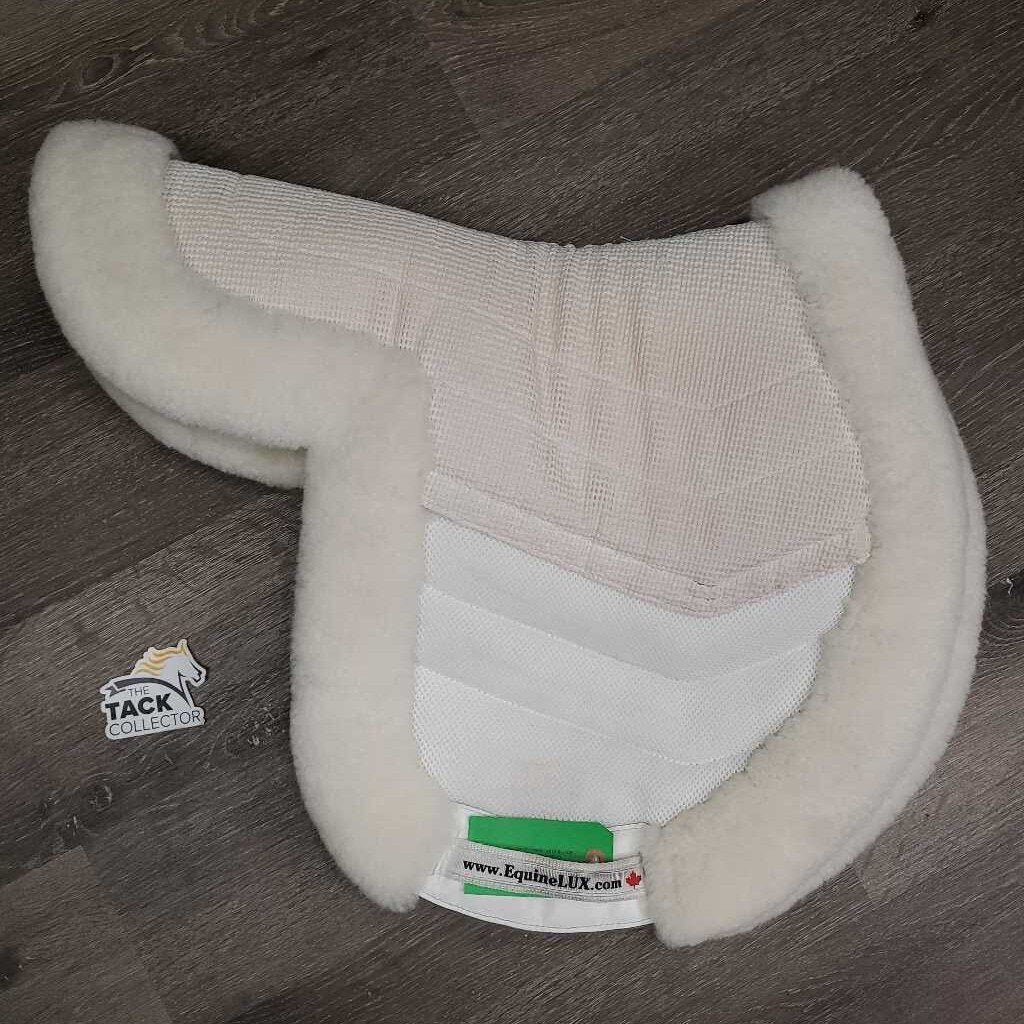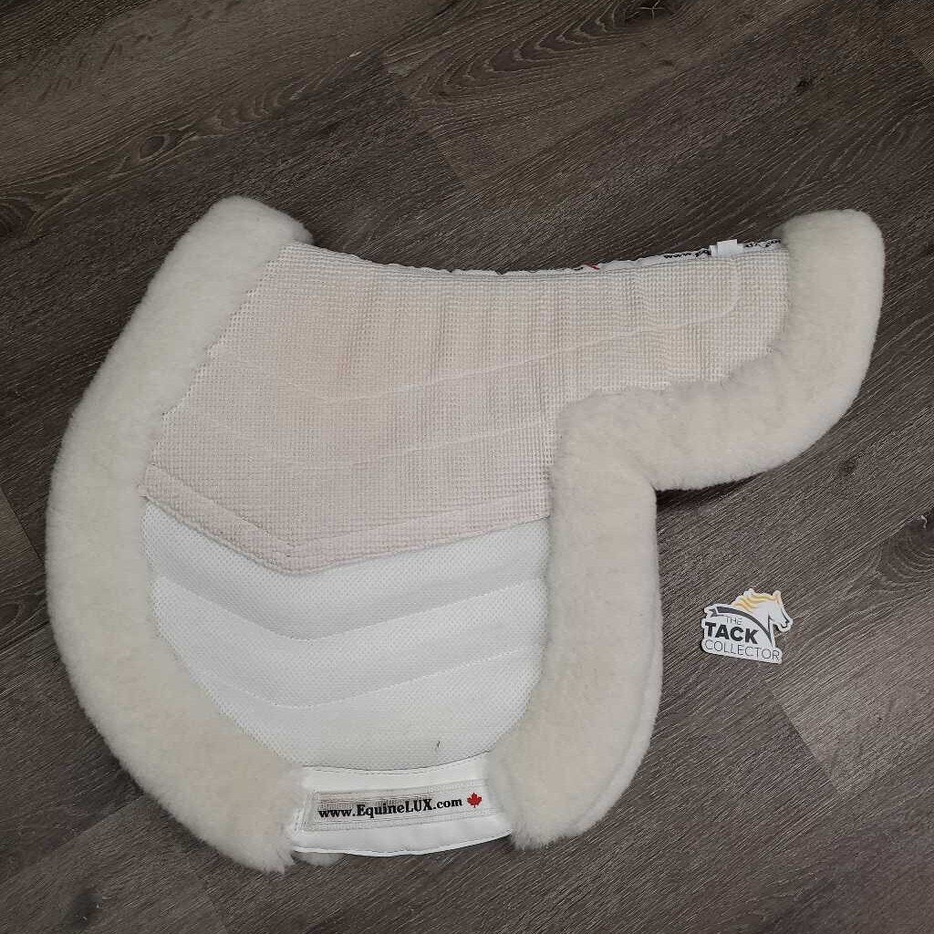 Sheepskin Shimmable Fitted Hunter Saddle Pad, non-slip top, mesh, 2 shims *vgc, clean, mnr stains, hair, threads, clumpy, puckers
