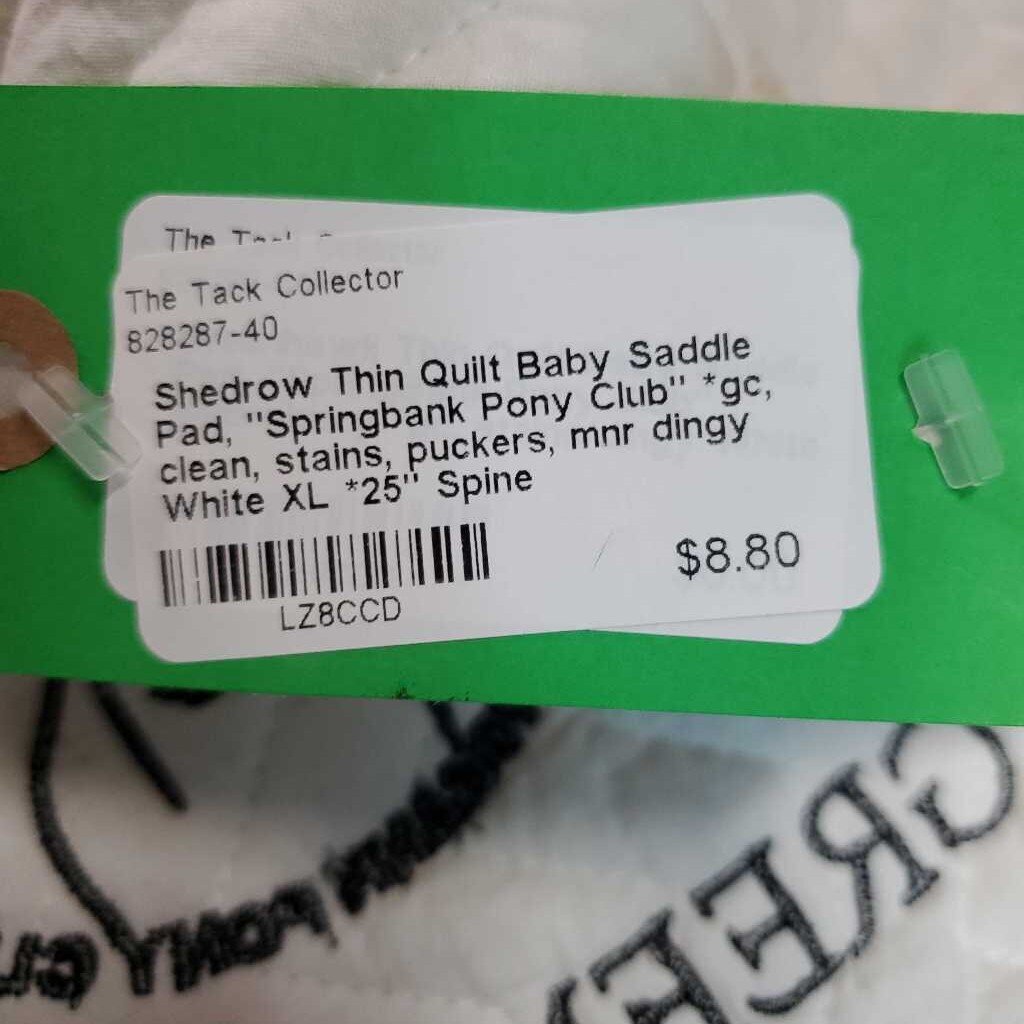 Thin Quilt Baby Saddle Pad, "Springbank Pony Club" *gc, clean, stains, puckers, mnr dingy