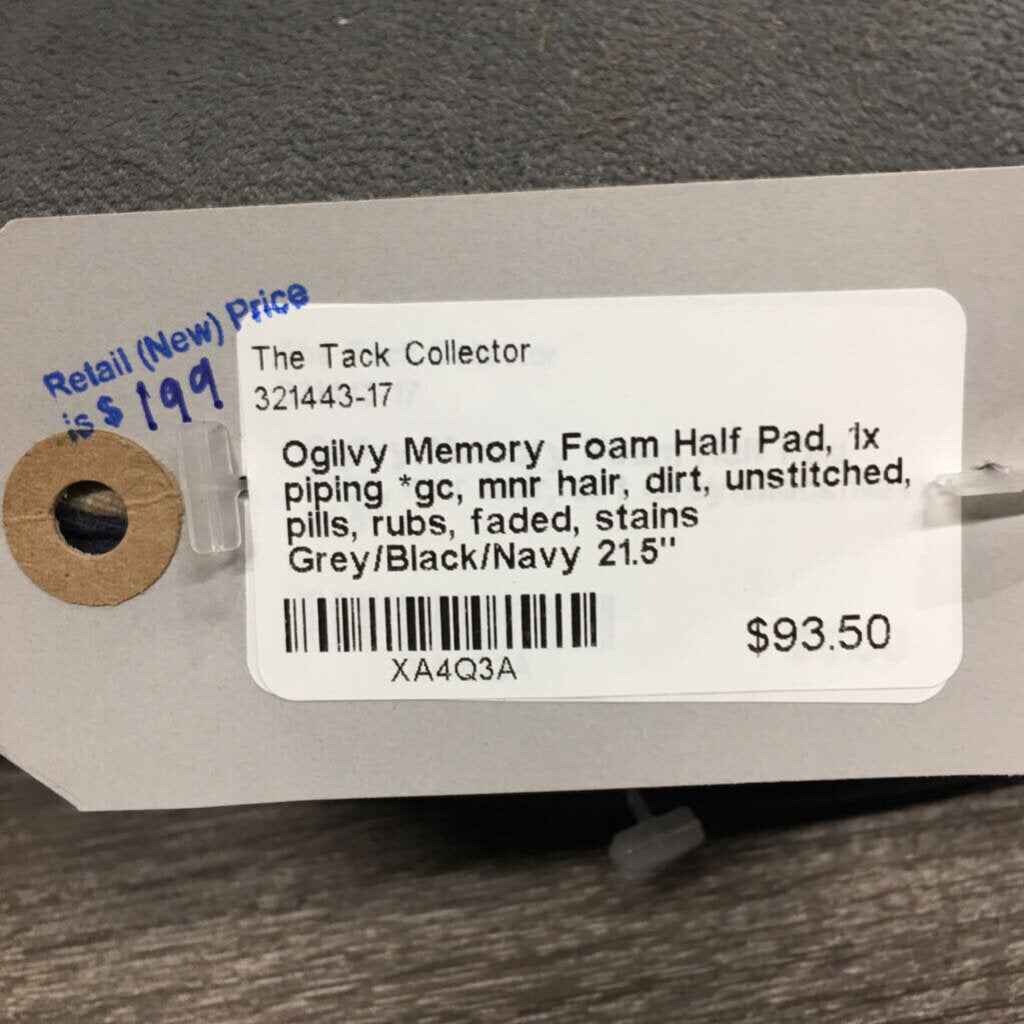 Memory Foam Half Pad, 1x piping *gc, mnr hair, dirt, unstitched, pills, rubs, faded, stains